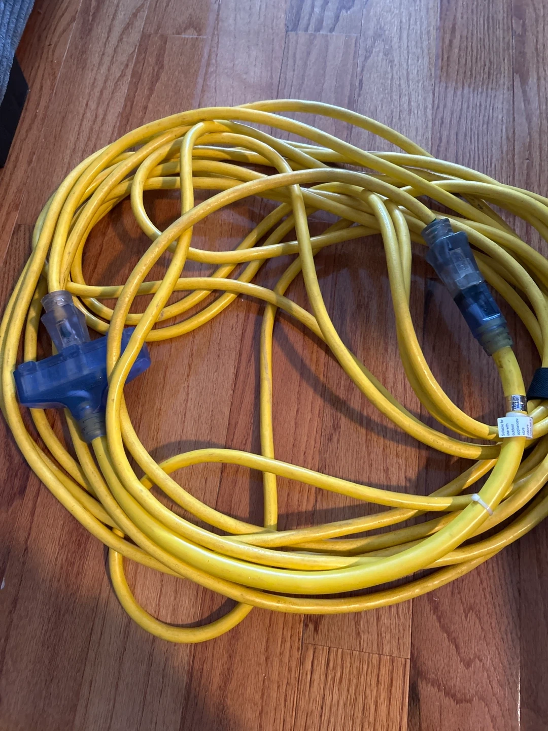 Selling a yellow extension cord. It's in good condition and ready to use for your indoor or outdoor power needs