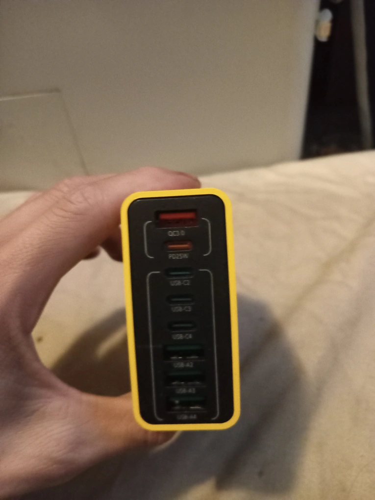 Brand new unopened wall adapter with a total of 8 ports. 4 USB & 4 USB-C. 100 Watts. The last two pictures are of the wall adapter that I'm keeping. The one I'm selling is still in its packaging and has never been opened. Cash only. Pick up or meet up in public place. Willing to bargain on the price.