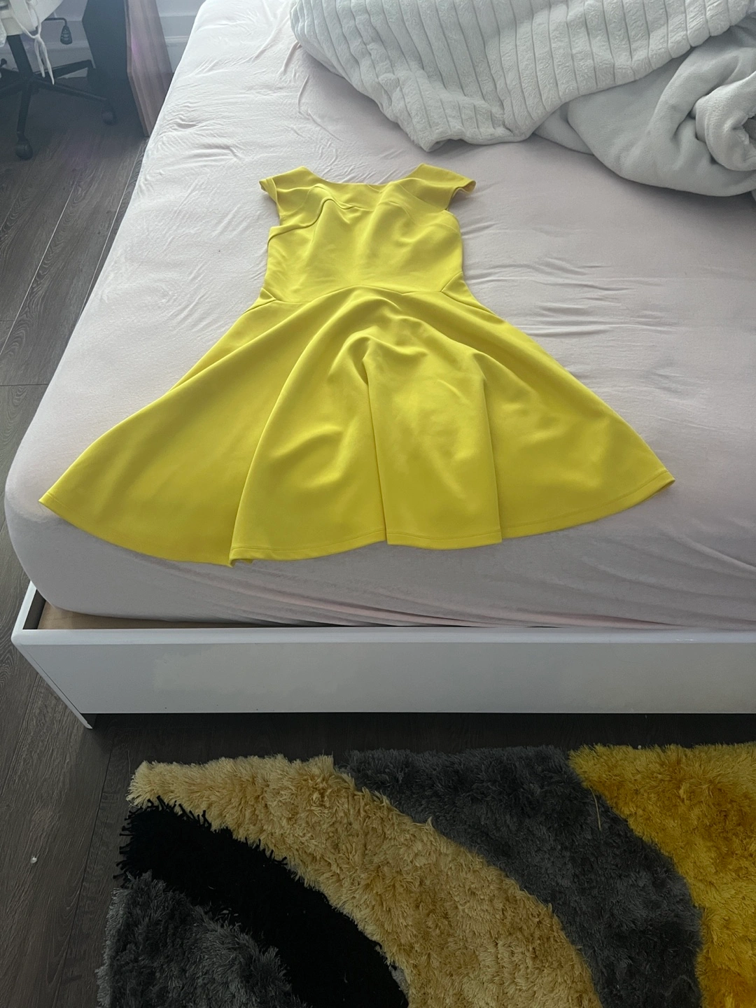 Here's a cute yellow fit and flare dress! It's in great condition and ready for a new home. Perfect for a sunny day out or a special occasion