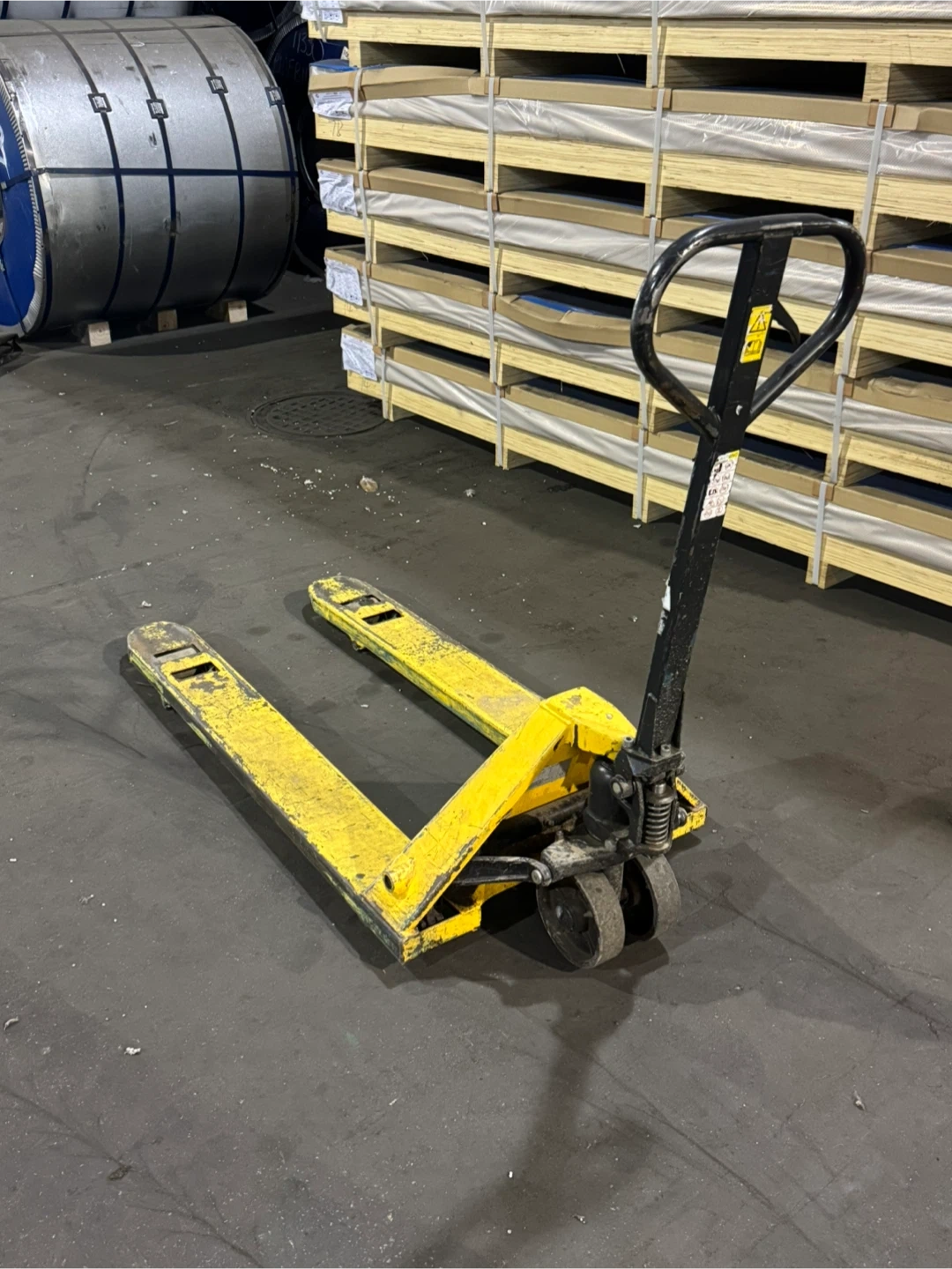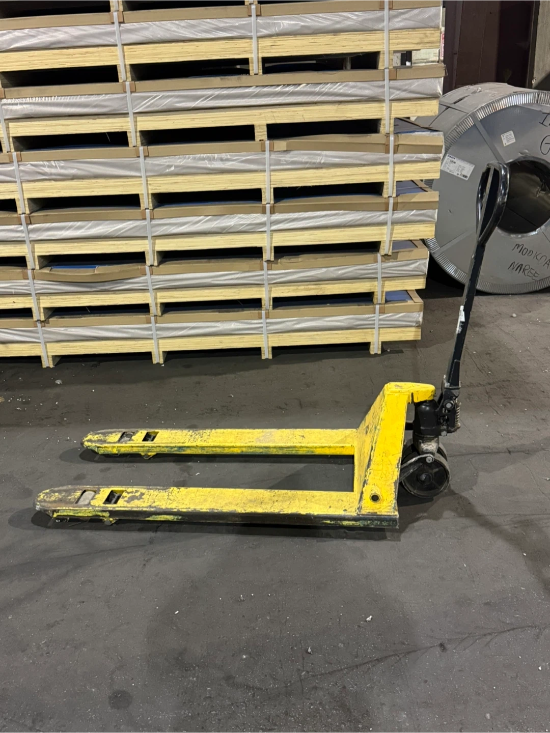 Selling 2 used yellow pallet jacks. It shows signs of wear and use, but it's still functional. Great for moving pallets around a warehouse or shop. Both are fully functional but one has a worn bearing on one of the wheels. It still rolls but should probably be fixed. Will need to be picked up from my place of work. Price is for both jacks