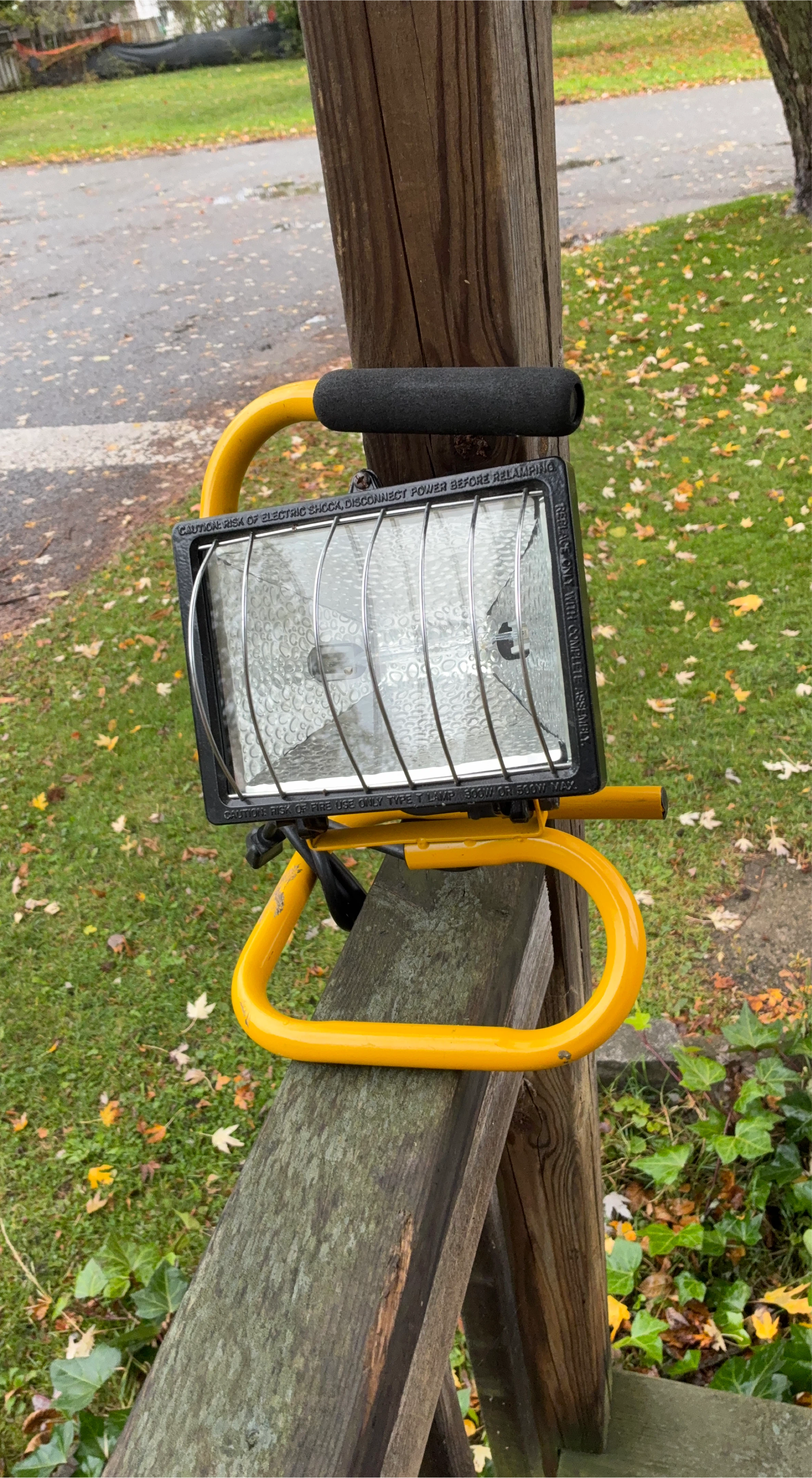 197Selling a yellow work light. It has a black handle for easy carrying. Please disconnect power before relamping and replace only with complete assembly. Use only type T lamp 300W or 500W max
