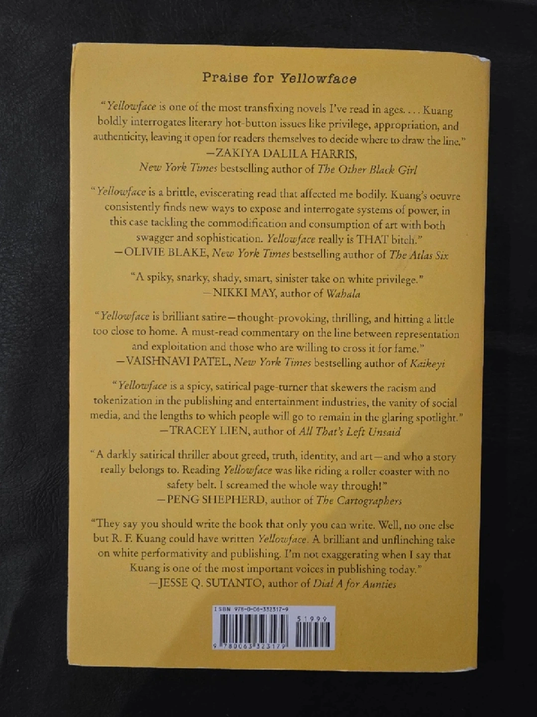 Selling a copy of Yellowface by R.F. Kuang! It's a #1 New York Times Bestselling Author book. A razor sharp read, according to Time!