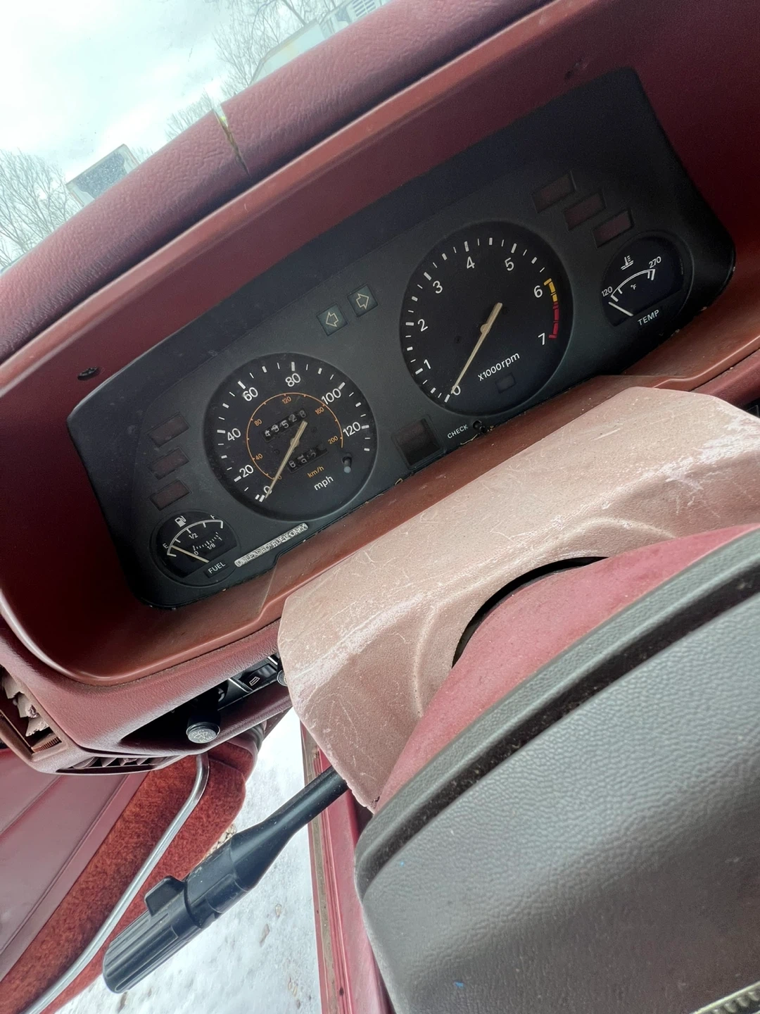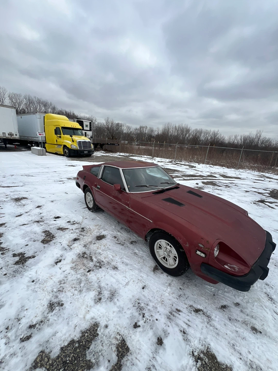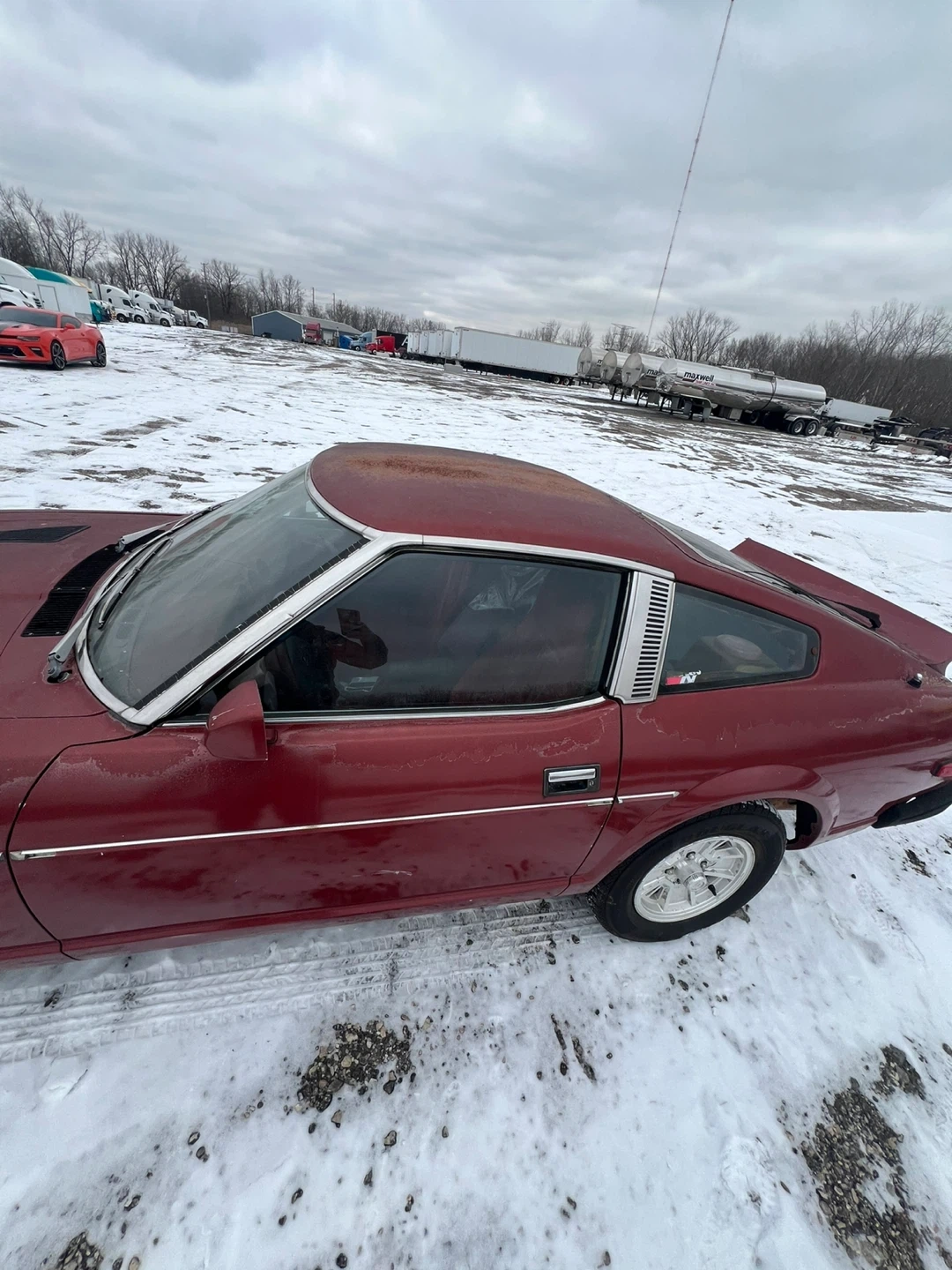 This is a 1979 Datsun 280ZX. It's a classic sports coupe in a deep red color. This car would be a great project for a collector or enthusiast.