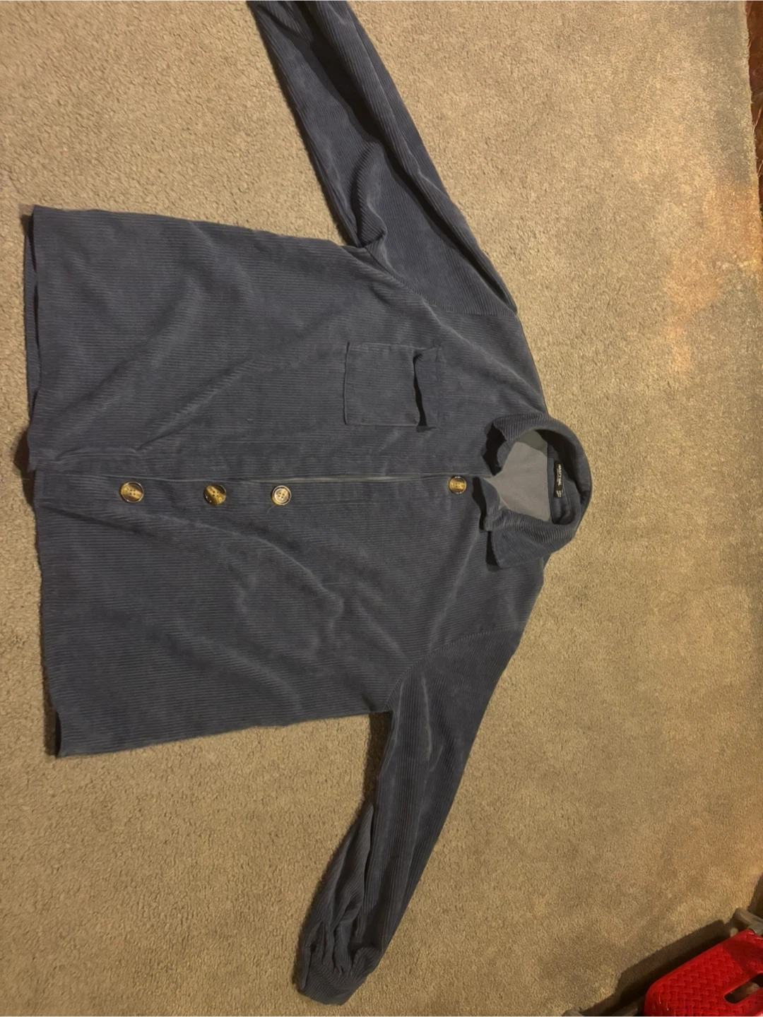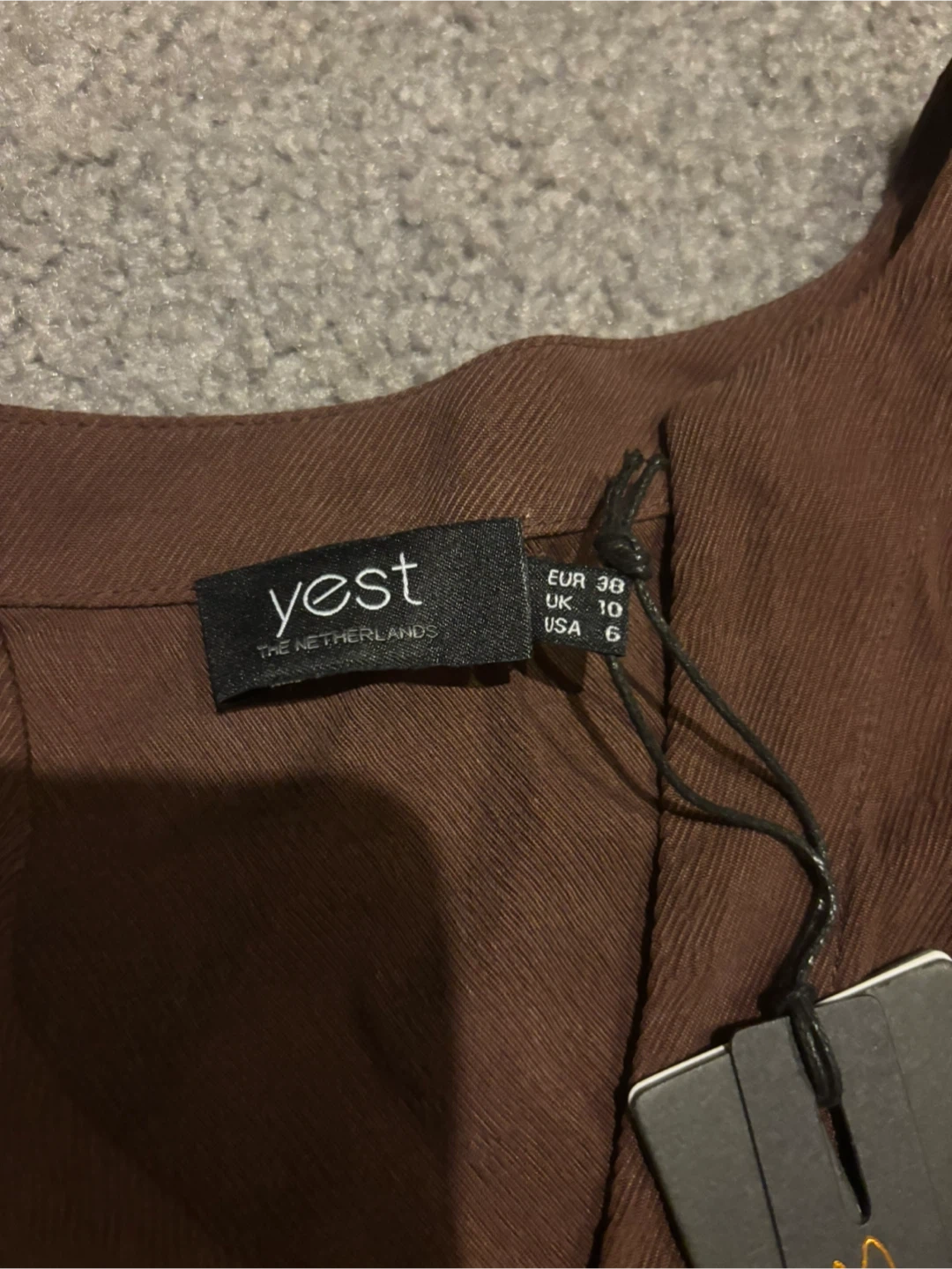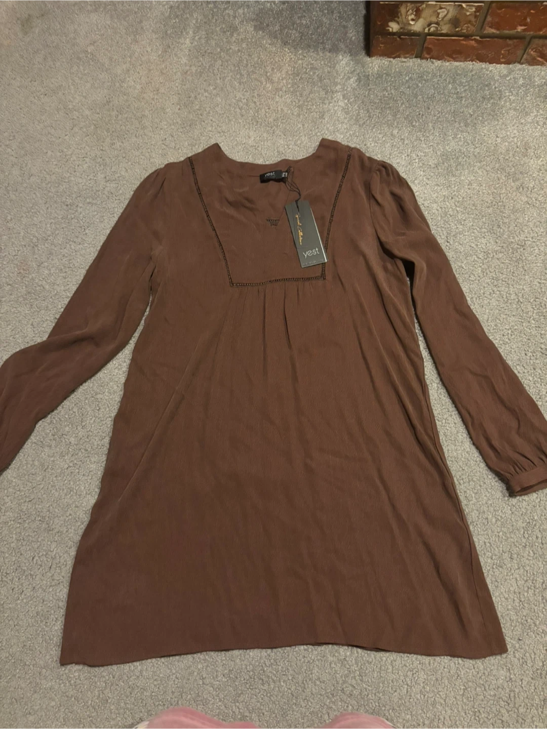 Selling a cute brown dress from Yest! It's a UK size 10 (EUR 38, USA 6). It's brand new never worn and ready for a new home. Corduroy blue shirt - from nasty gal - oversized- missing a button
