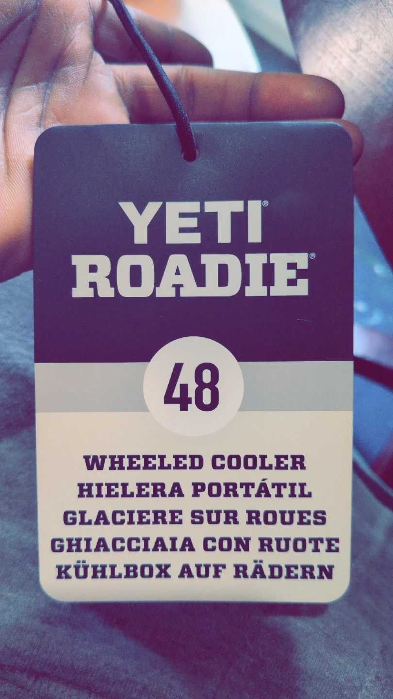 10Selling this Yeti Roadie 48 Wheeled Cooler ( NEVER USED) plastic is still on, comes with a dry food storage trey, and a coupon code for a $50 Yeti cooler lock. It's in great condition brand new and ready for all your adventures. This cooler is super convenient with its wheeled design, making it easy to transport. Original price $575.00,