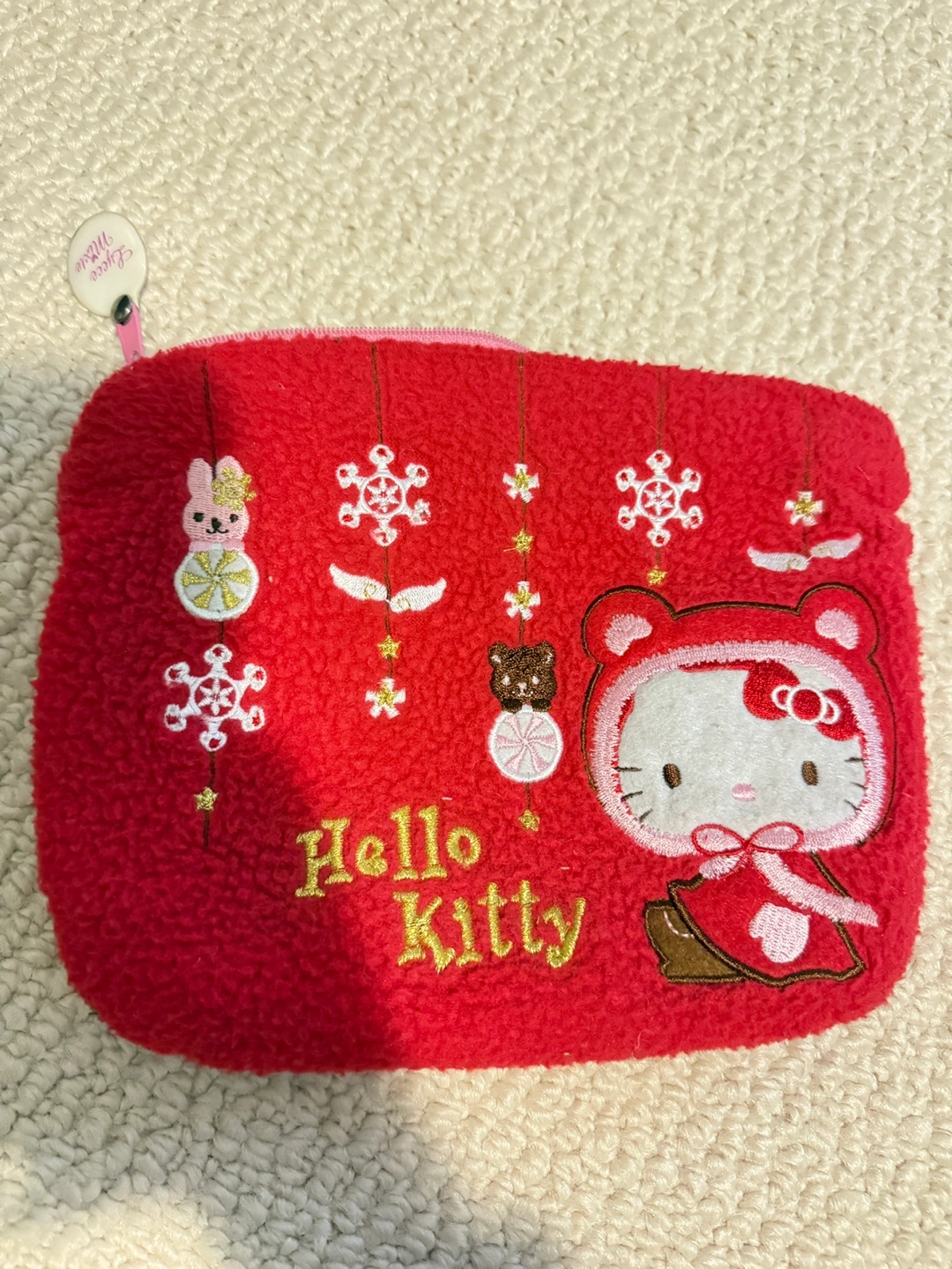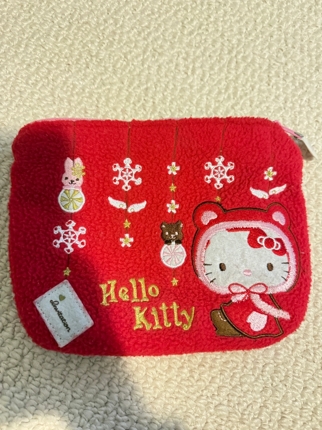 Selling a couple of cute makeup bags! One is a Juicy Couture heart-shaped pouch and the other is a Hello Kitty pouch. Both are red and in great condition!