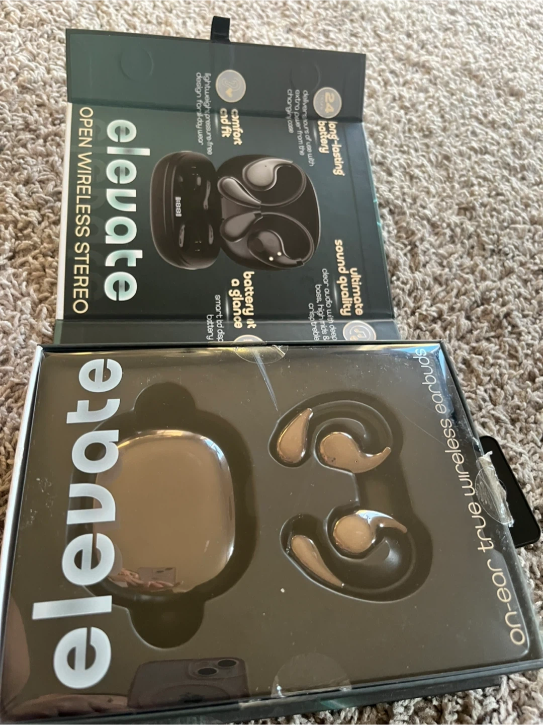 Elevate open wireless stereo earbuds with 24 hours of music playtime. They feature comfortable fit and ultimate sound quality. Includes charging case.