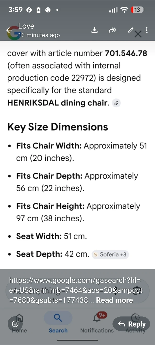 This is a cover designed specifically for the standard HENRIKSDAL dining chair. It fits chairs with approximately 51 cm width and 56 cm depth. Seat width is 51 cm and seat depth is 42 cm. The cover is designed for chairs with approximately 97 cm height.Covers are still in packages never used