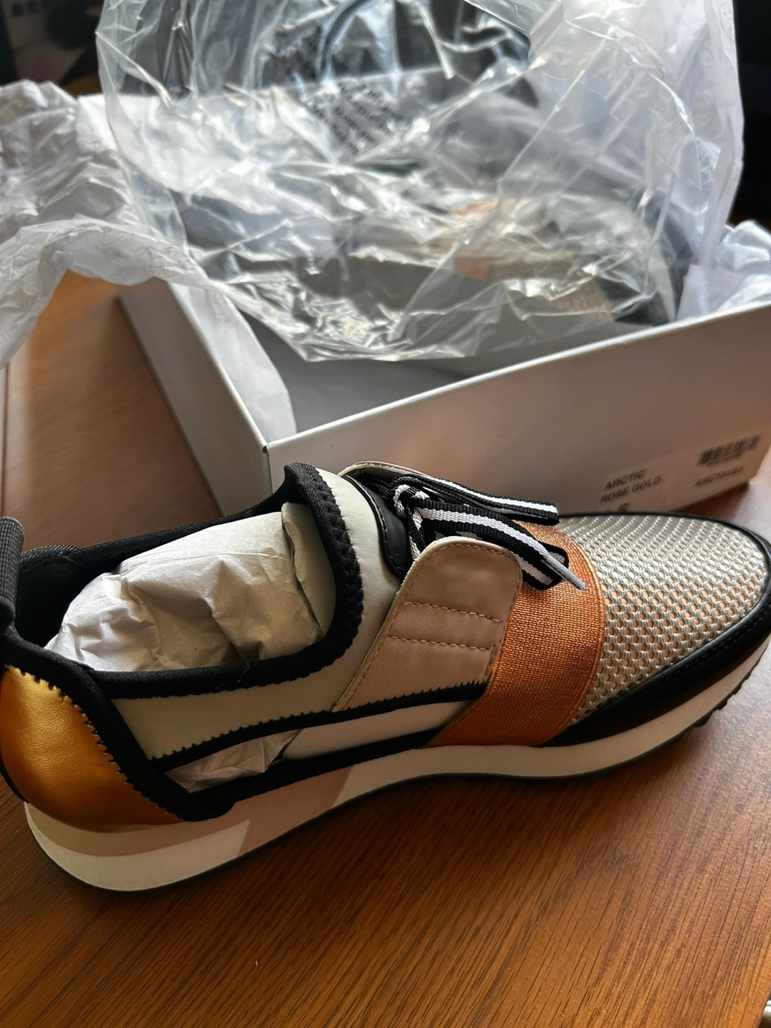 Selling a pair of Steve Madden Arctic shoes in rose gold, size 7.5. These are in new condition and come with the original box! Bought them online a few years ago never got around to wearing them then seasons passed.