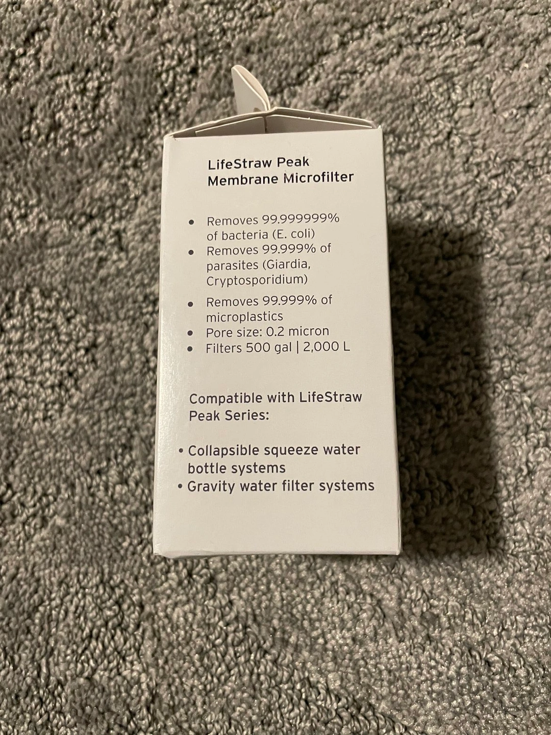 never opened, Protects against 99.999999% of bacteria (including E.coli, Salmonella), 99.999% of parasites (including Giardia and Cryptosporidium), 99.999% of microplastics, silt, sand, and cloudiness
