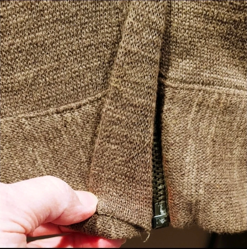 Slight discoloration on Collar & Bottom by Zipper but not noticeable unless looking for it, the Vest fabric can cover it