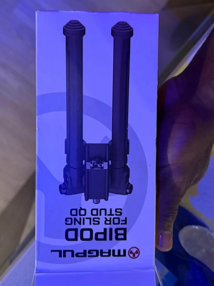 Magpul bipod with sling stud mount. Features adjustable legs with multiple height positions, a lightweight yet extremely sturdy design, and a quick and secure mounting system. Includes original box and mounting adapter. Perfect for hunting, range shooting, or upgrading your rifle setup. Retail is around $150β$180+.