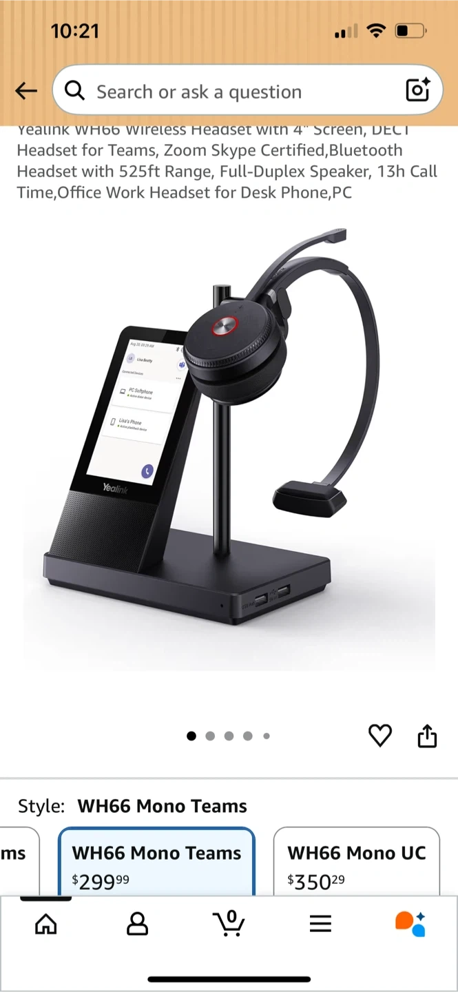 Yealink WH66 Wireless Headset with 4" Screen, DECT Headset for Teams, Zoom Skype Certified,Bluetooth Headset with 525ft Range, Full-Duplex Speaker, 13h Call Time,Office Work Headset for Desk Phone,PC