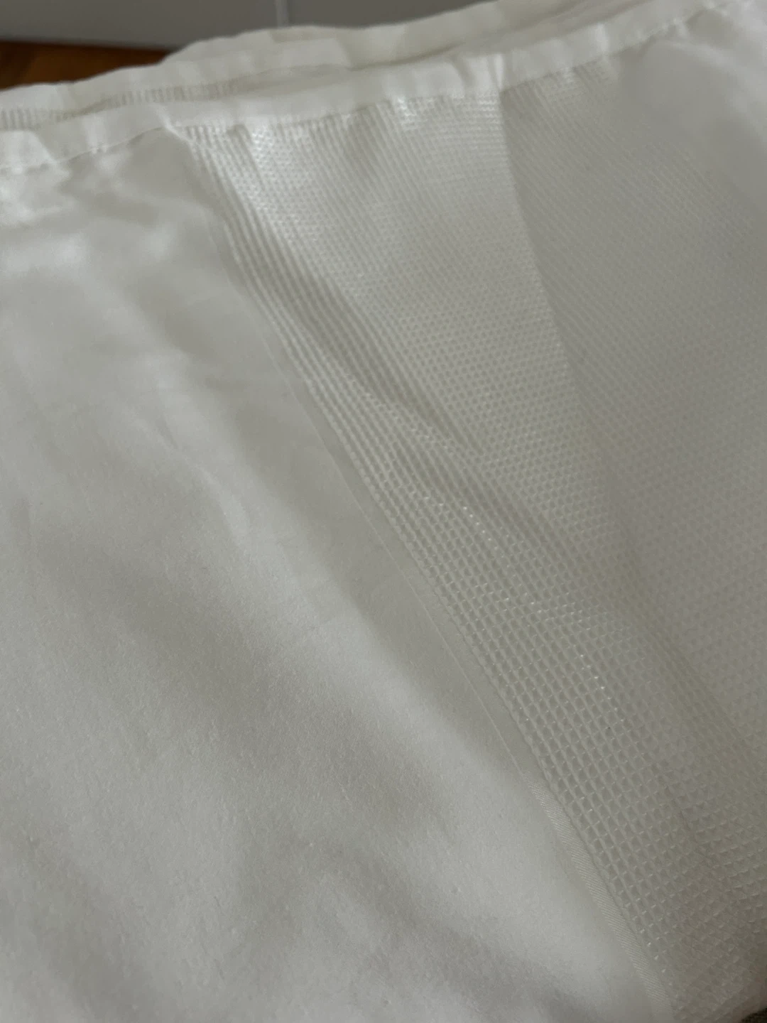 White king size duvet cover with 2 king size shams. Like new. Only used for show. Slight waffle weave pattern throughout