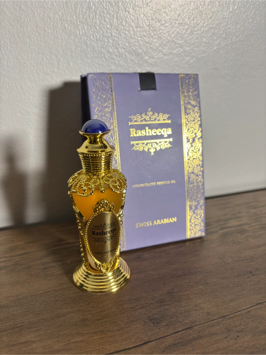A luxurious Rasheeqa perfume oil by Swiss Arabian — elegant, long-lasting, and never used.