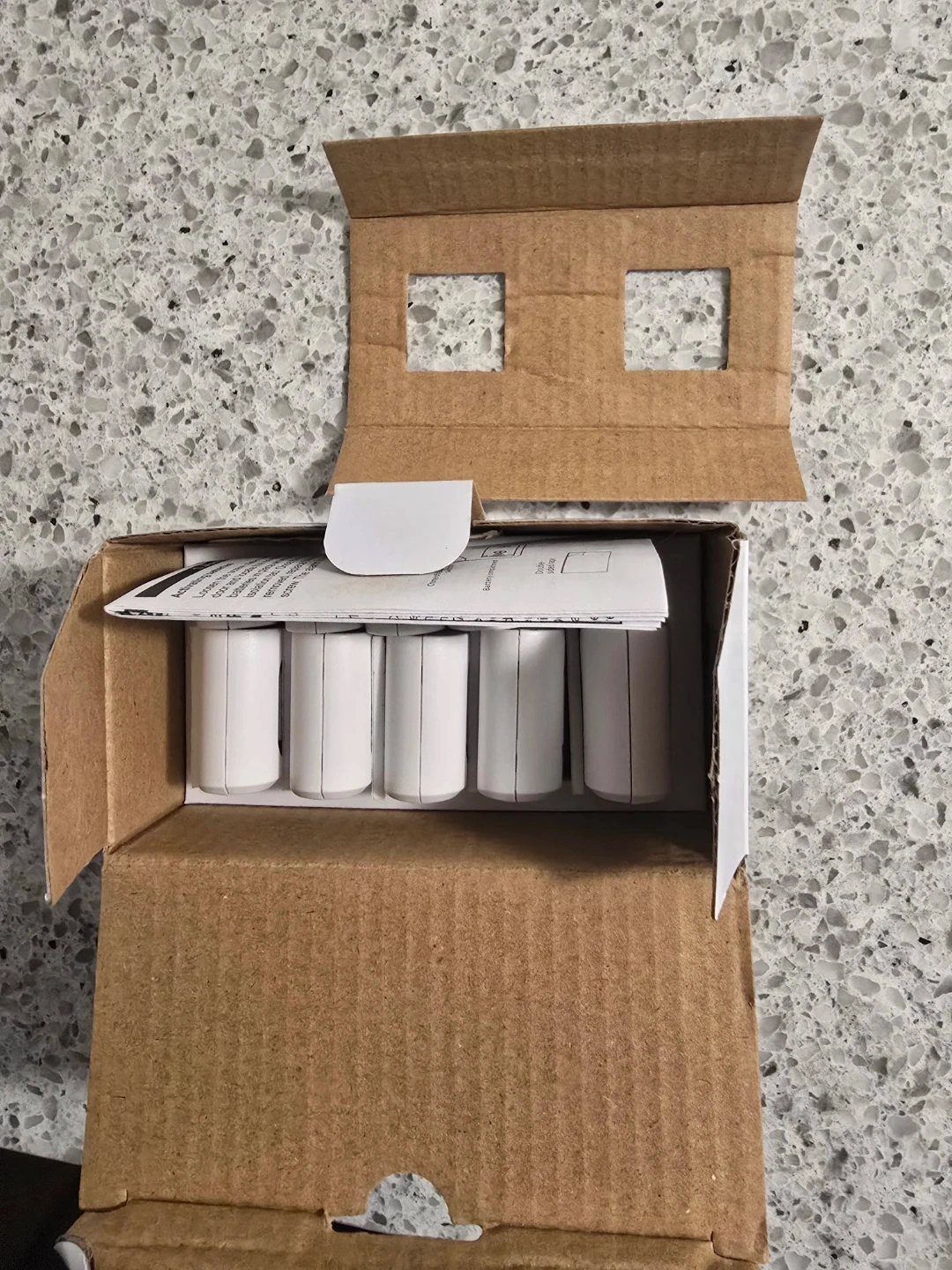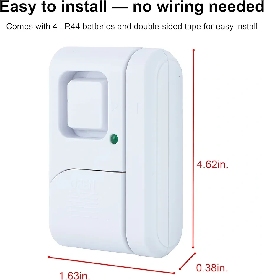 This is a 5-pack of GE Audible Window/Door Alarms. They're easy to install with no wiring needed. Each alarm can trigger a 120-decibel chime or alarm when the magnet separates from the base by more than 0.5 inches.