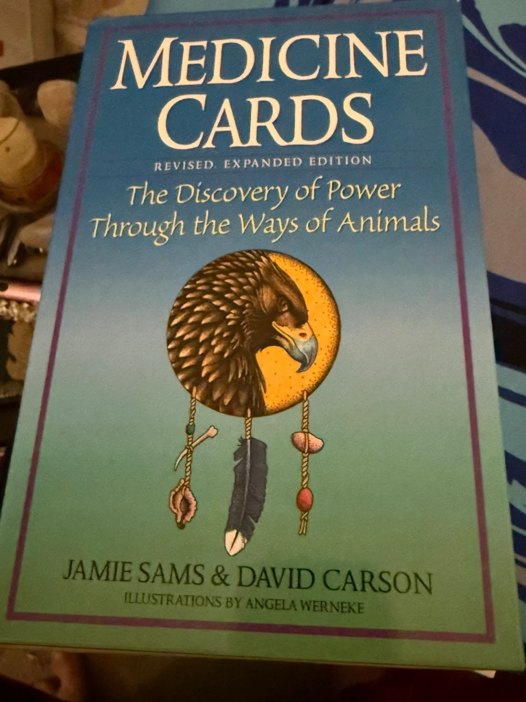 This is the Revised Expanded Edition of Medicine Cards by Jamie Sams & David Carson. It features illustrations by Angela Werneke. This deck helps explore animal spirits for personal discovery.