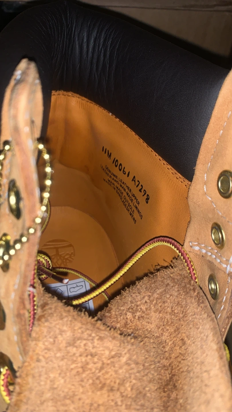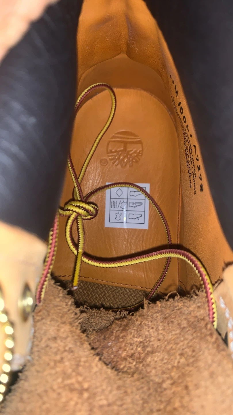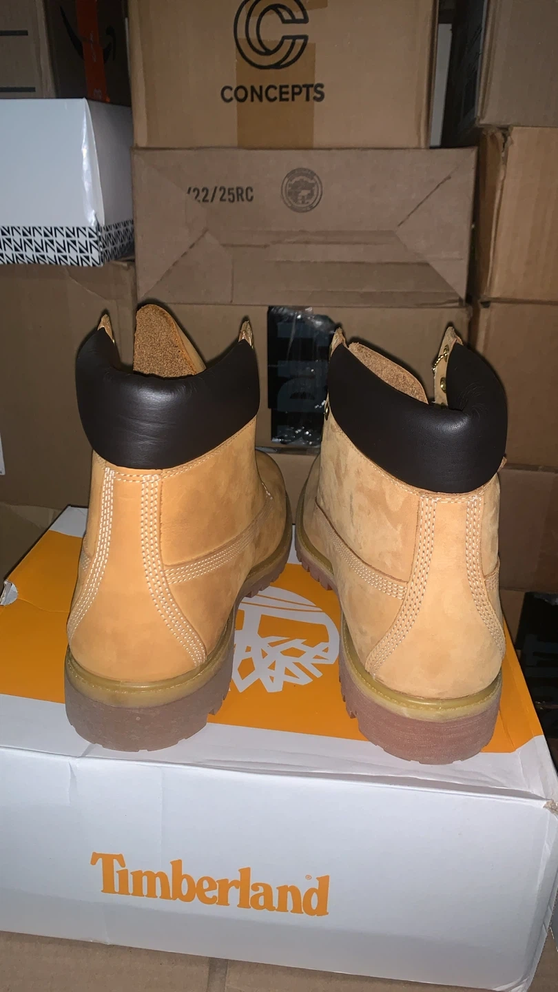 Authentic Timberland boots in good condition! These are a size 11 and come with the original box. They feature a tan leather upper with a black padded collar. Perfect for all weather!Used just once and supper clean and excellent condition