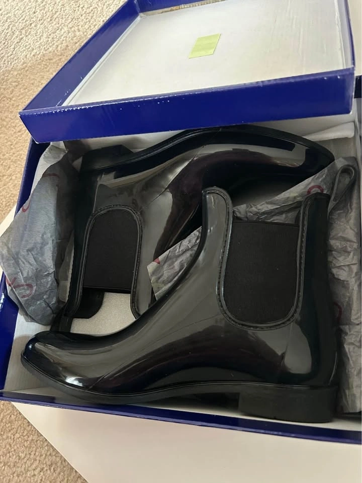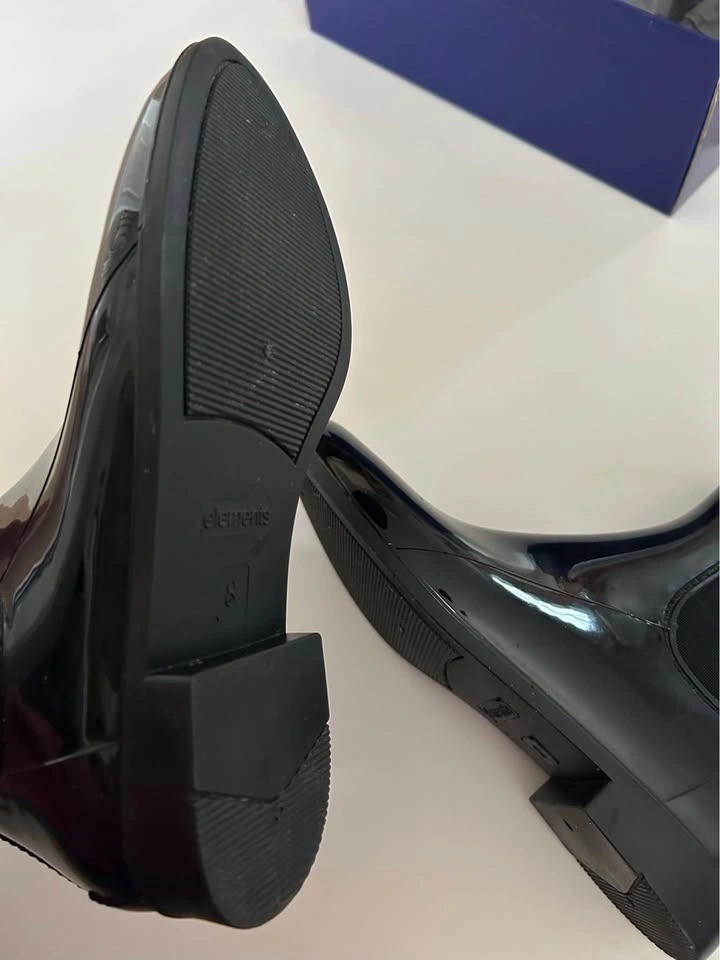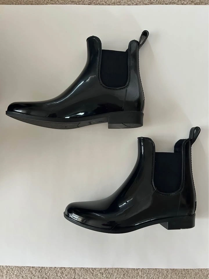 Ladies Black Patent Chelsea Rain Boots Size 8 Markham