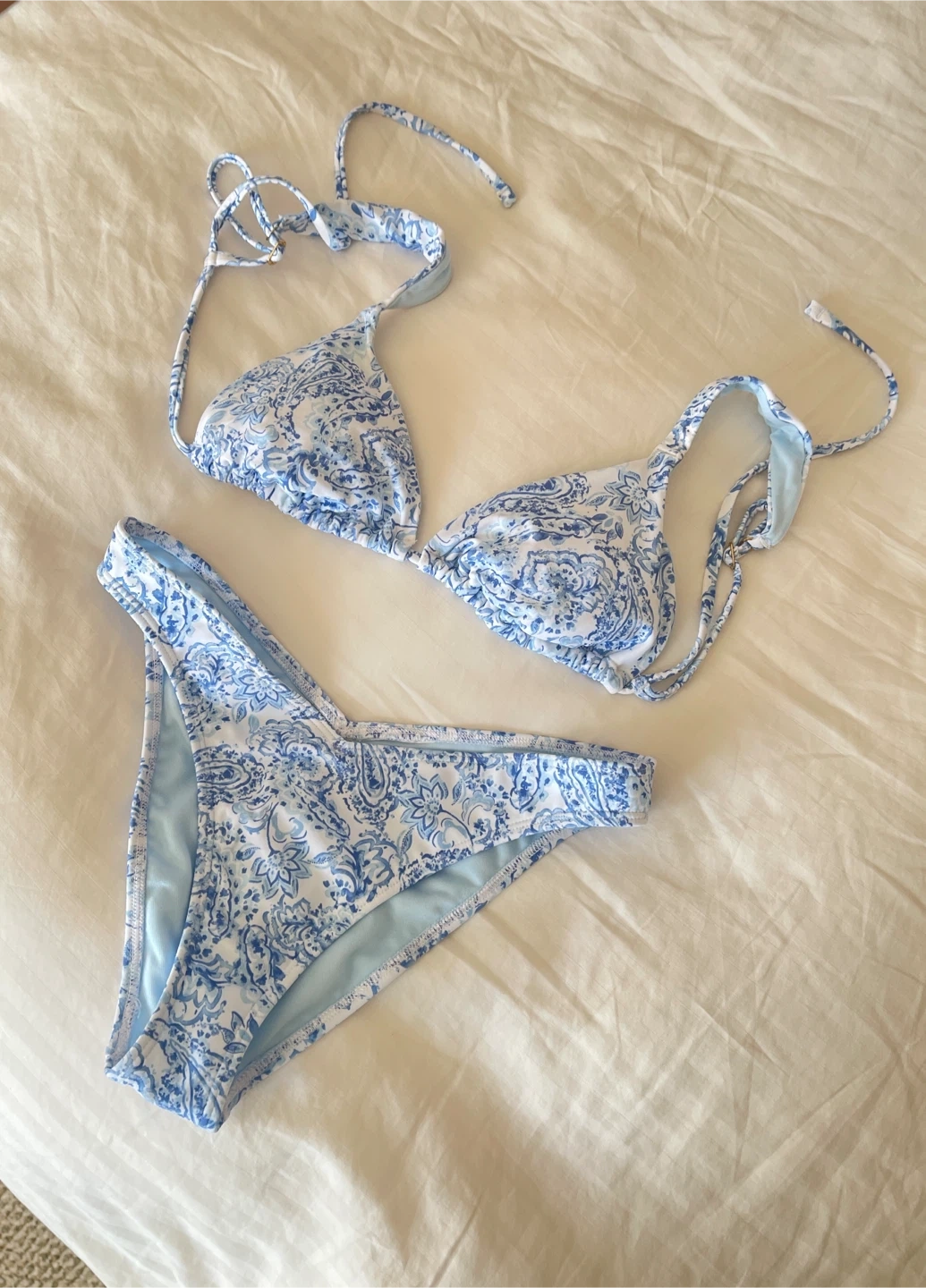 Selling a cute bikini set! The colours are a lovely blue and white. Perfect for the summer season! Feel free to ask any questions