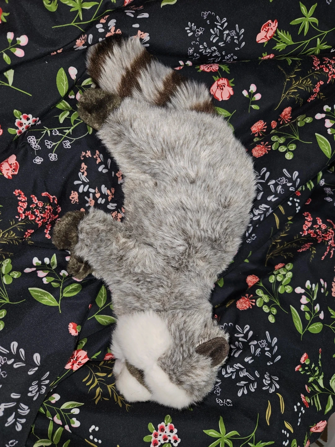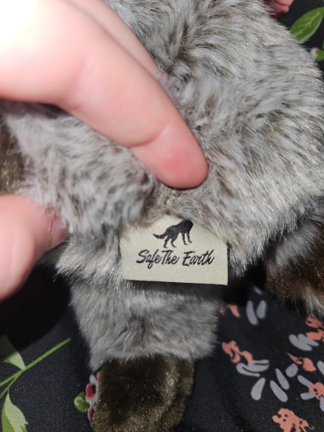 This is a plush raccoon toy from Safe the Earth. It has soft, grey and white fur. Great for kids who love animals!