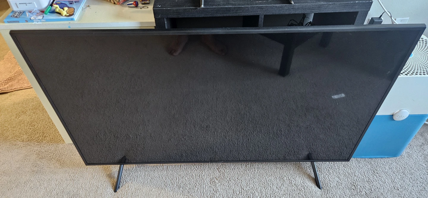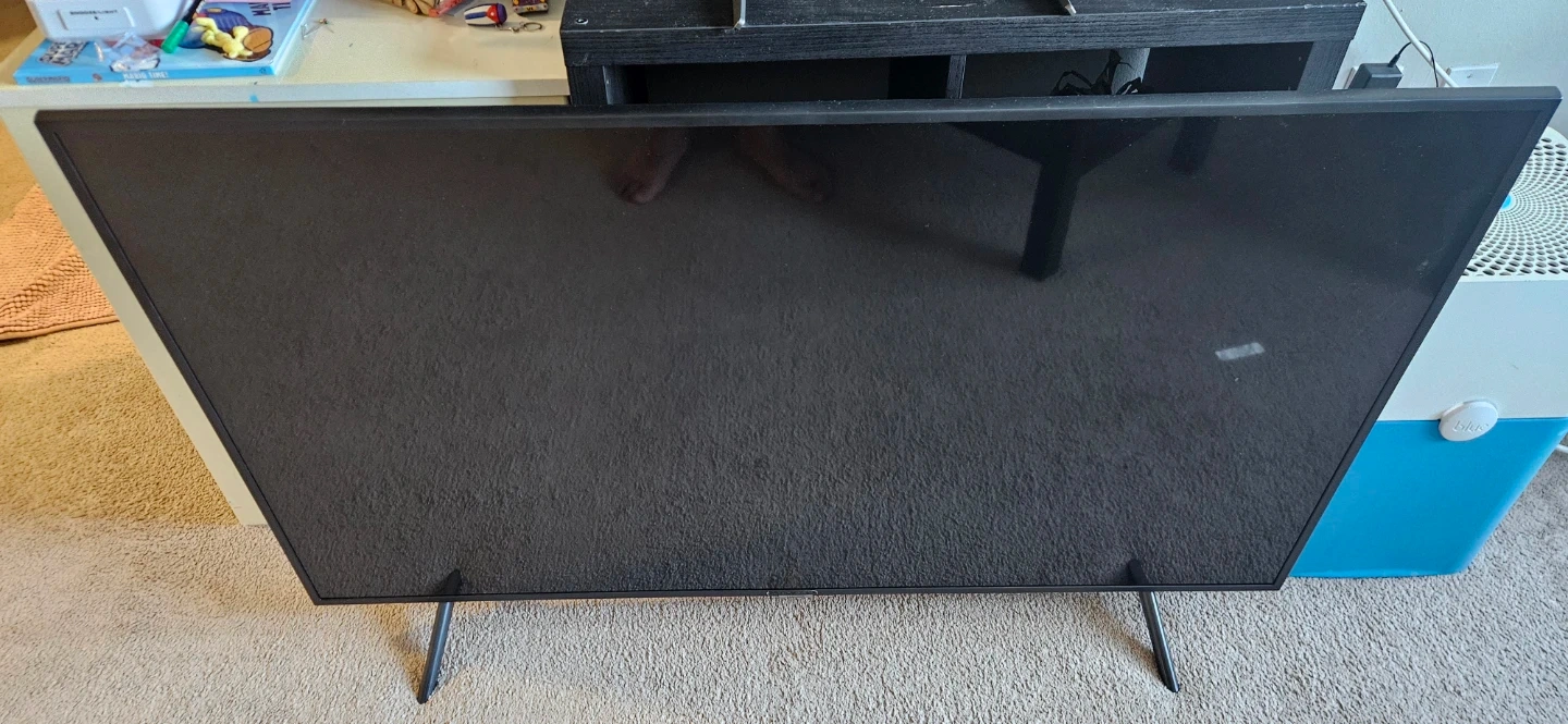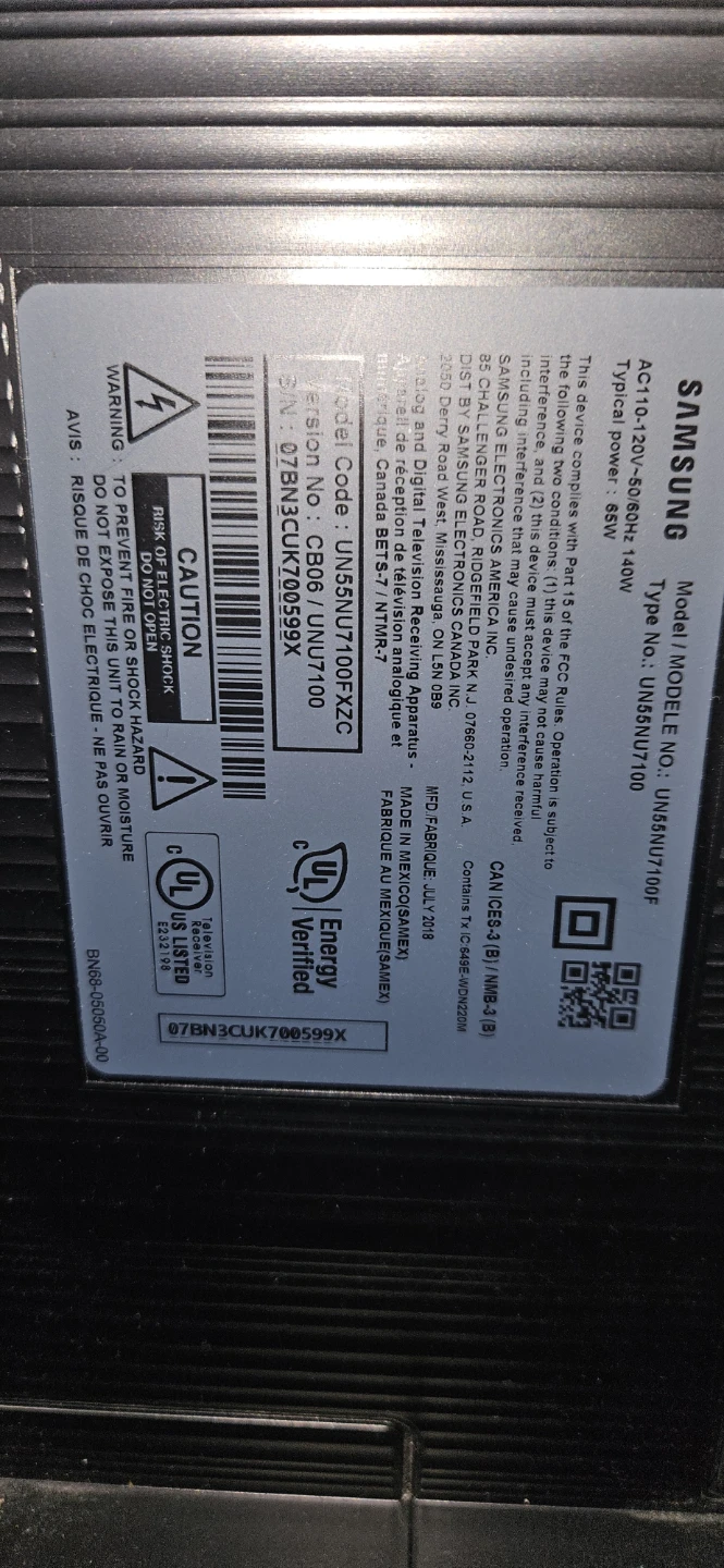 Selling a Samsung 55-inch 4K UHD TV, model UN55NU7100. It features a 55-inch screen and 4K screen is broken was working before that. I can say what else is not working. Comes with legs stands and remote