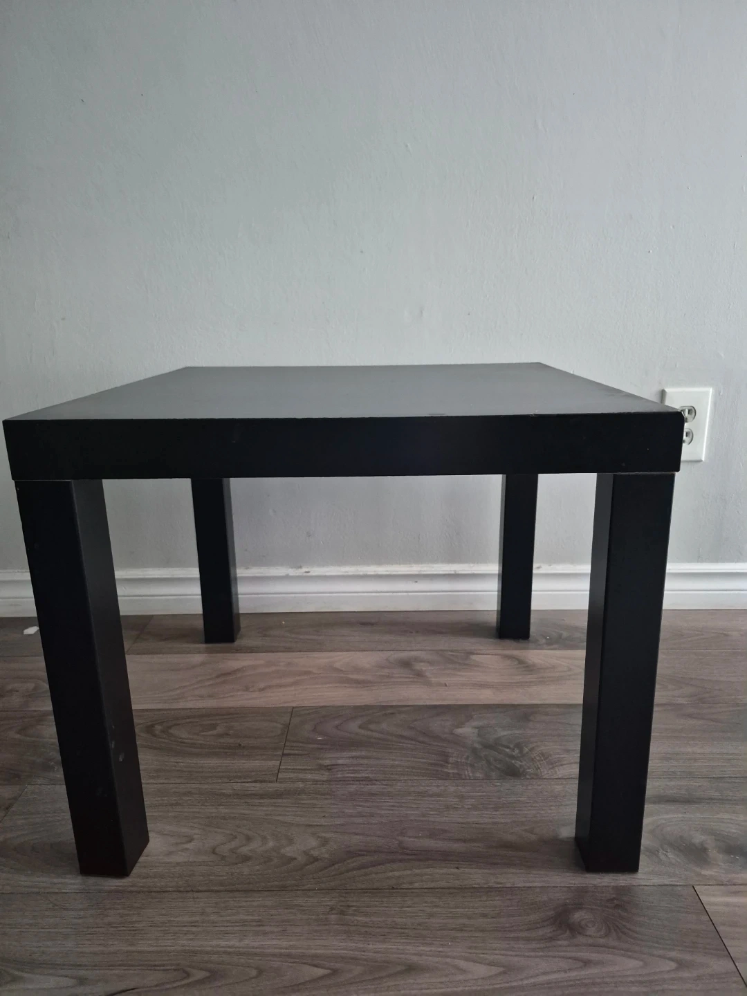Black tabletop surface. Measures approximately 25 inches by 25 inches. It's a flat, dark surface with a matte finish. Could be used as a replacement for a small desk or table.