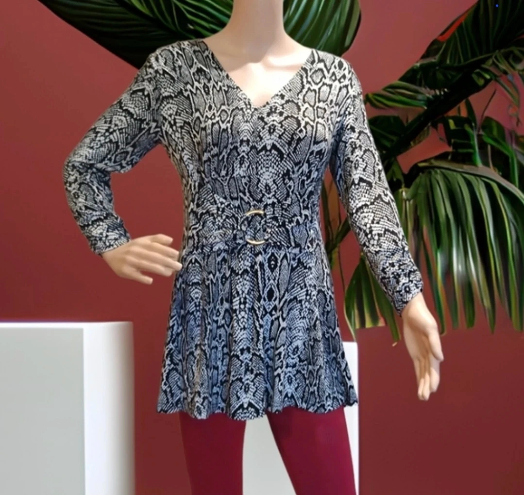 Women's Snake Print Tunic Top with Belt MATERNITY SMALL