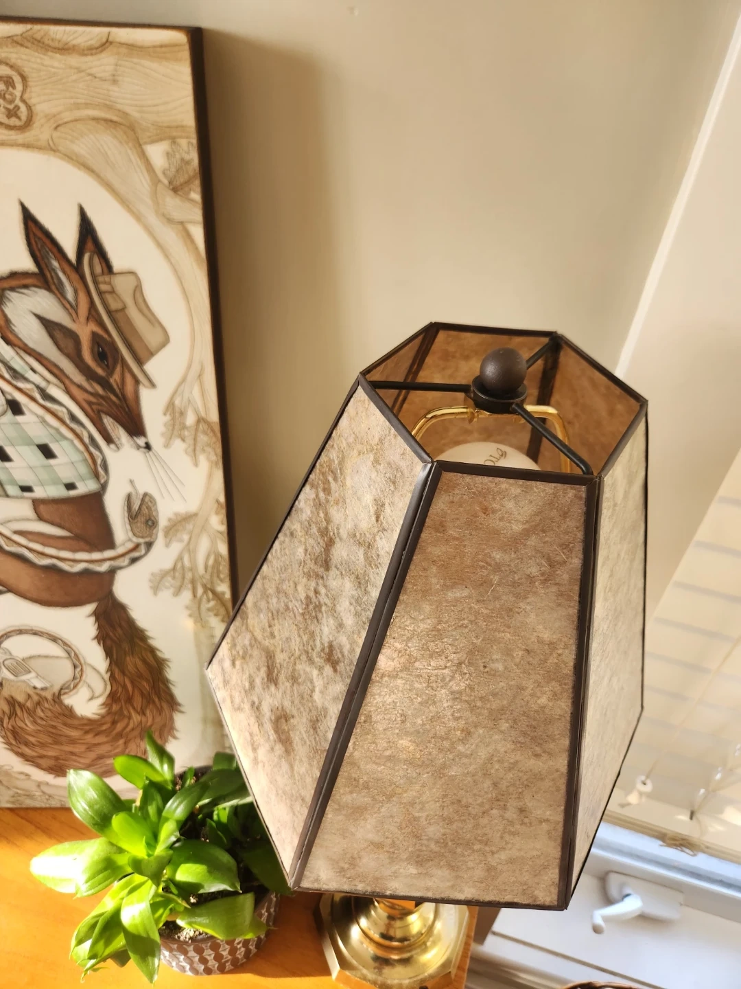 TRY THIS AWESOME 70s TRI-LITE Brass table lamp! Adjustable lighting lets YOU set the mood! MOVIE NIGHT lighting, GAME night illumination, classic, ornate base. Features a capzi like stain glass style. It's a beautiful accent piece for any room!