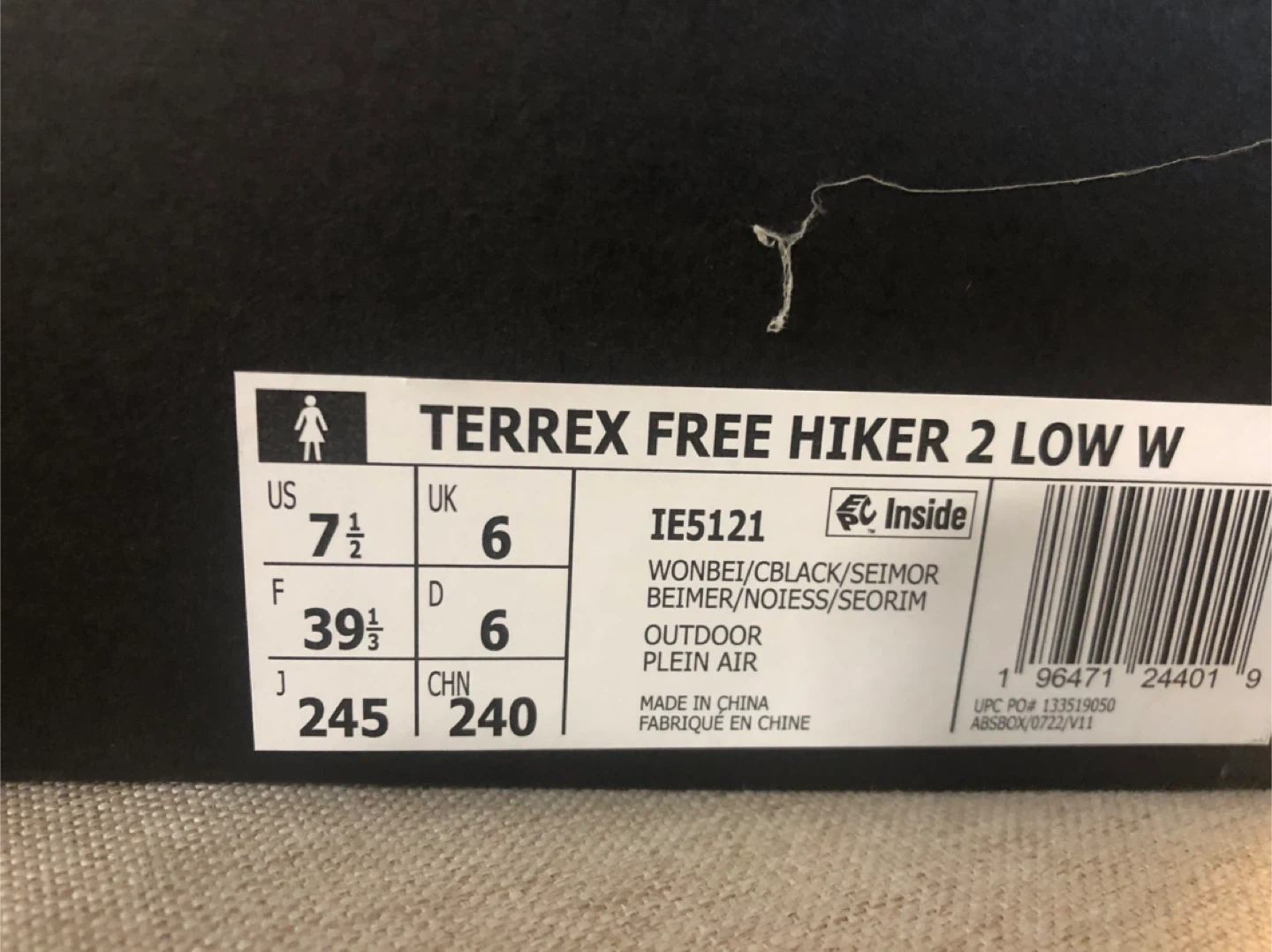 Adidas Terrex Free Hiker 2 Low W hiking shoes in beige and black. Women's US size 7.5, UK 6, EU 39.5. Includes original box.like new used once hiking a little big , only a few small scratches in front , paid over $150 sell for $70 firm thanks.