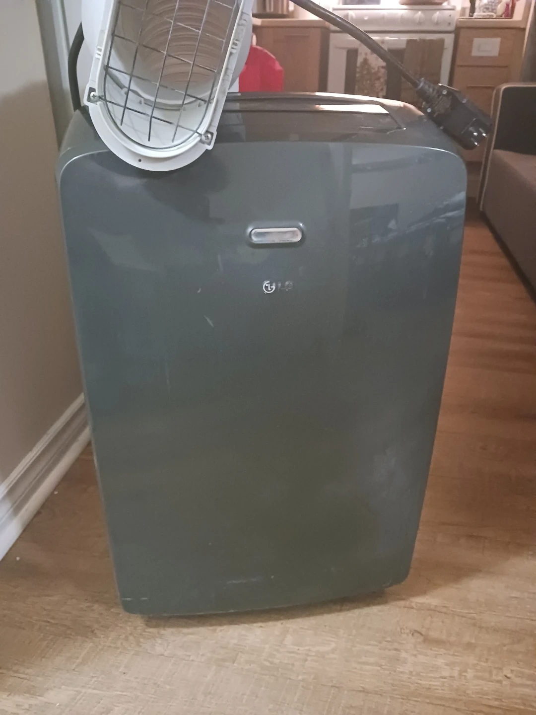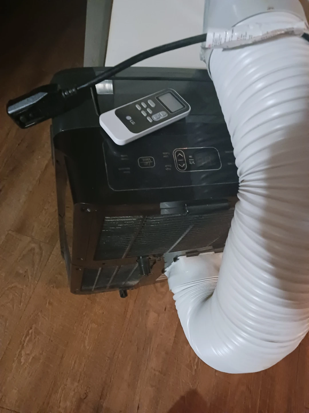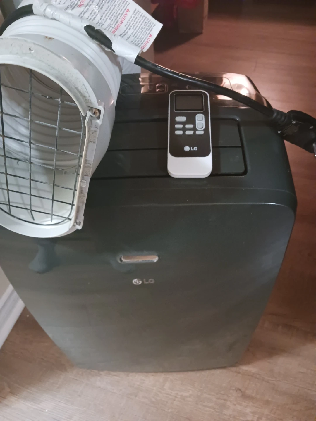 This is an LG portable air conditioner. It comes with a remote control and exhaust hose. This unit is great for keeping a room cool during warmer months! Only used for 3 months and still works like new.