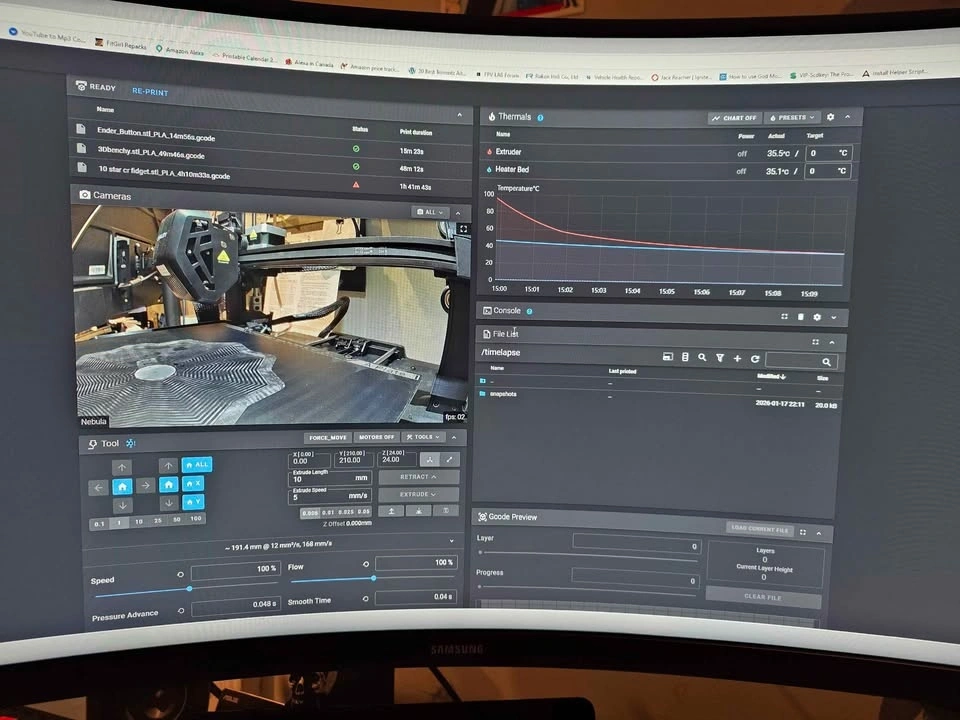 Creality Nebula Camera: Also installed camera to be able to monitor your prints remotely from webbrowser or even via the creality app remotely! $380 OBO