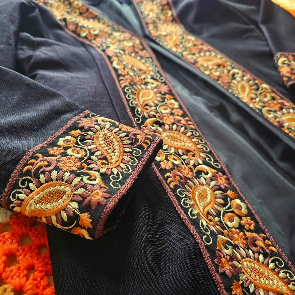 Kashmiri embroidery boho luxe Indian Pakistani fashion IndoWestern artisan made paisley statement coat hippie hippy ethnic tribal festival fest