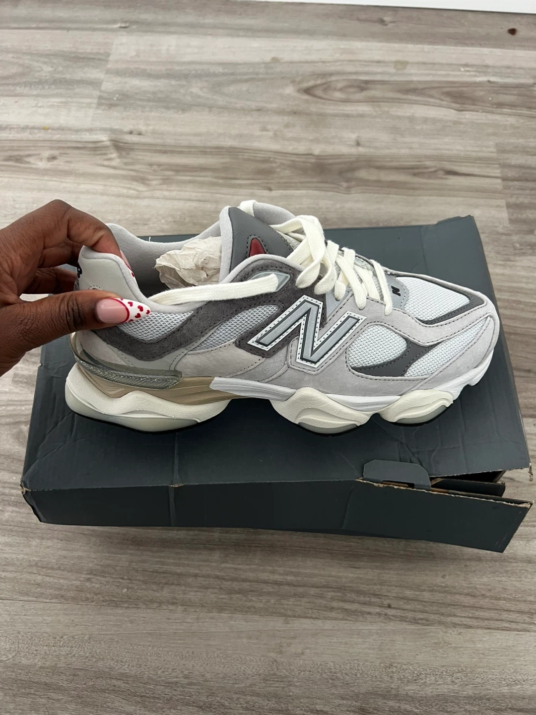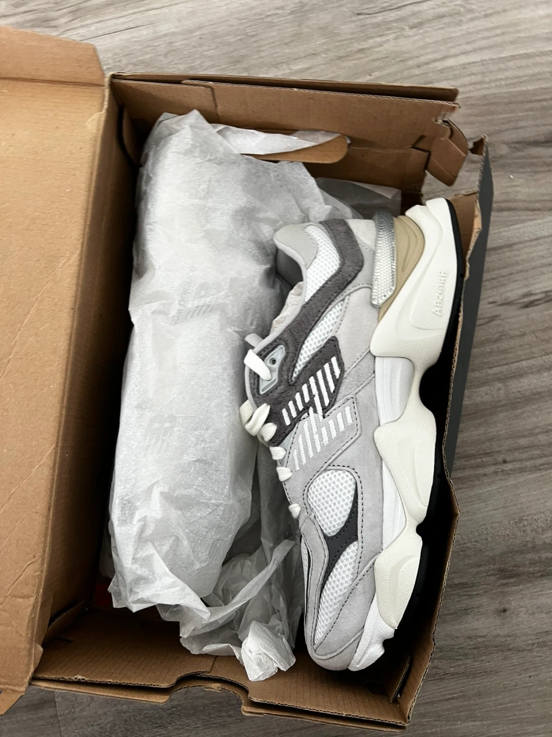 Selling brand new New Balance 9060 sneakers in grey/white. Never worn, they are too big for me. Shoes are in perfect condition and come with the original box.