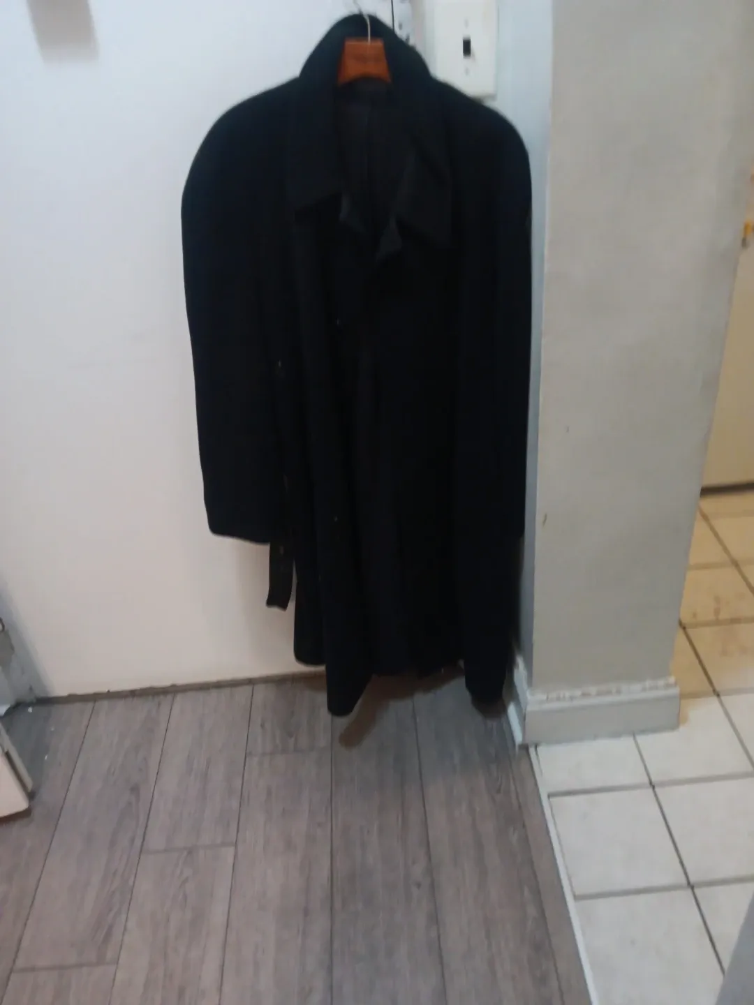 Classic black overcoat made from a wool blend. It features a traditional collar and button-front closure. A stylish outerwear option for cooler weather. Side 40 reg. Roberto Vassalli. Hardly use. Cashmere blend.