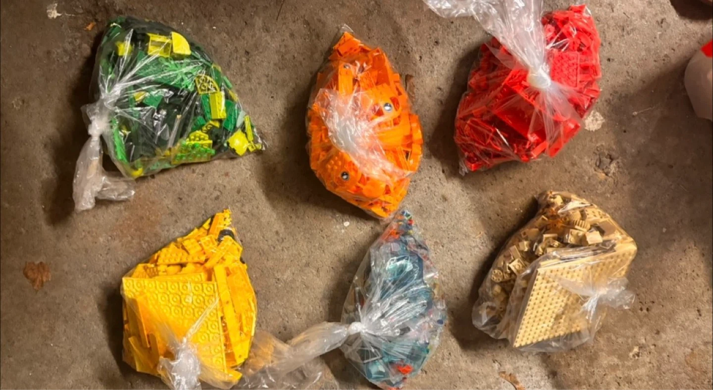 Child hood Lego bin of Lego sets I used to have. All sorted and bagged individually based on colour in over 30+ pounds of Lego.