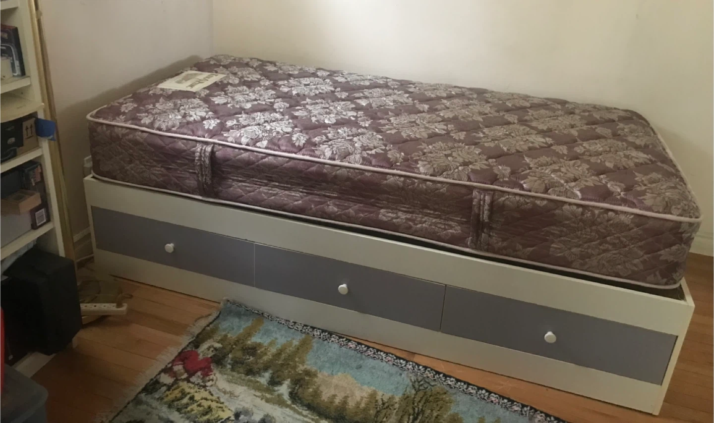 This twin bed comes has three spacious drawers for storage. Great for saving space in a bedroom! Sturdy.