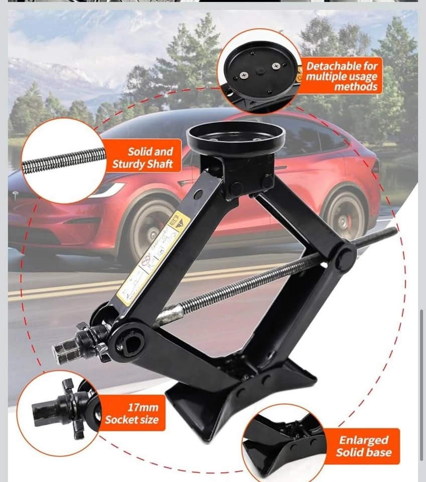 Brand new KKTR-CAR scissor lift jack, 2.5 tons capacity. Made of alloy steel, black color, weighs 3.99 kg. Specifically designed for Tesla models (Model S, 3, X, Y) but compatible with most electric vehicles. Compact and portable, perfect for emergency tire repairs on the go. Easy to use with a smooth-operating hand crank. Secure and reliable lifting for your vehicle. Never used. Pickup in Burlington only. Cash payment accepted at pickup. This is a final sale, please inspect the item before you leave. Feel free to explore my other listings for more great deals!