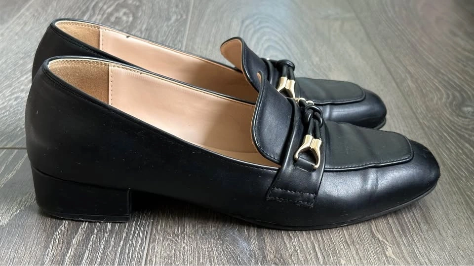 Stylish Jack & Jill black loafers with a gold buckle detail on top. Super comfy for everyday wear or dressing up a bit. Women’s size 240mm (about US 7). Best fit for US size 6.5–7 depending on the brand.