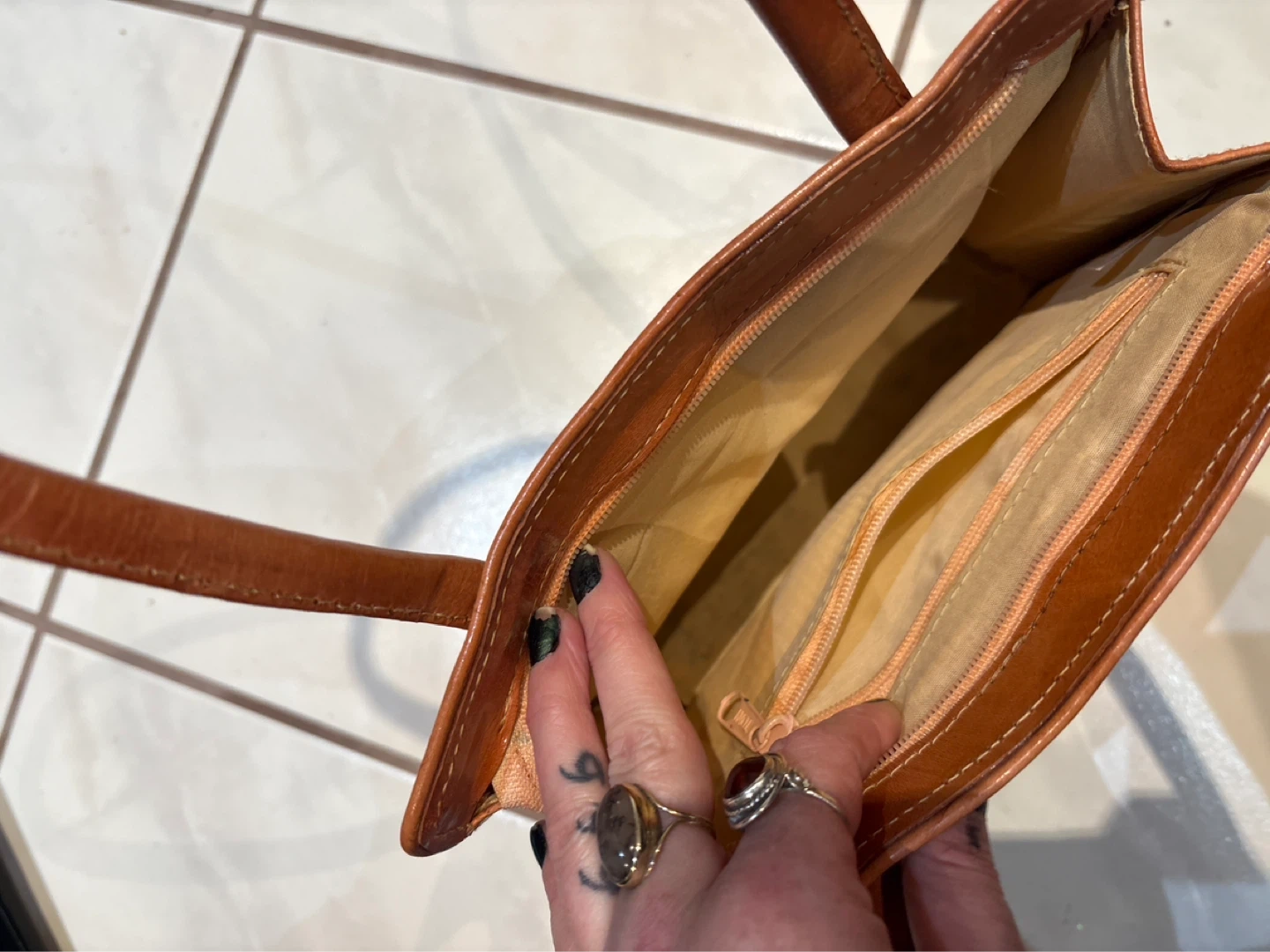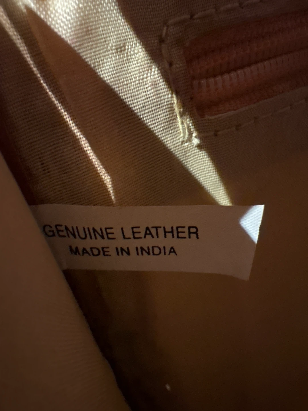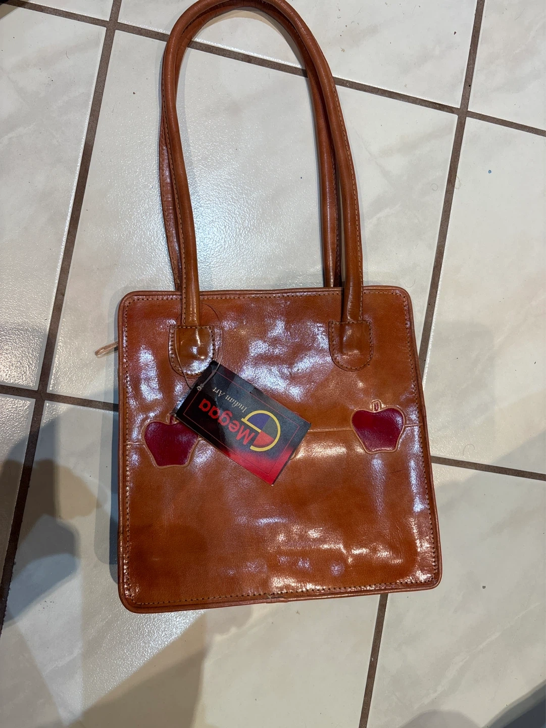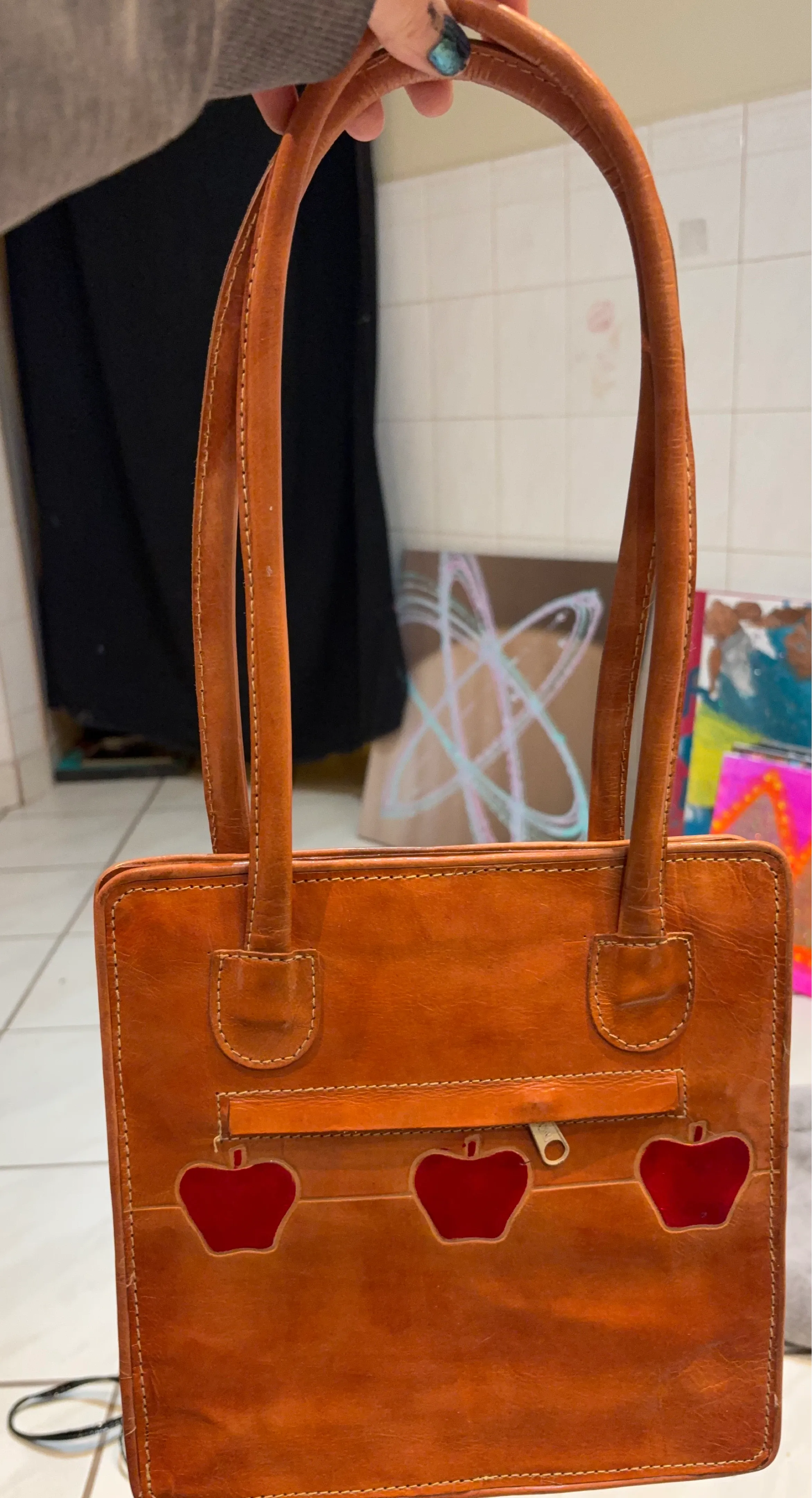 Genuine leather purse in a rich brown colour. It has a cute apple detail on the front and a zippered interior pocket. Made in India. Great for carrying your essentials!