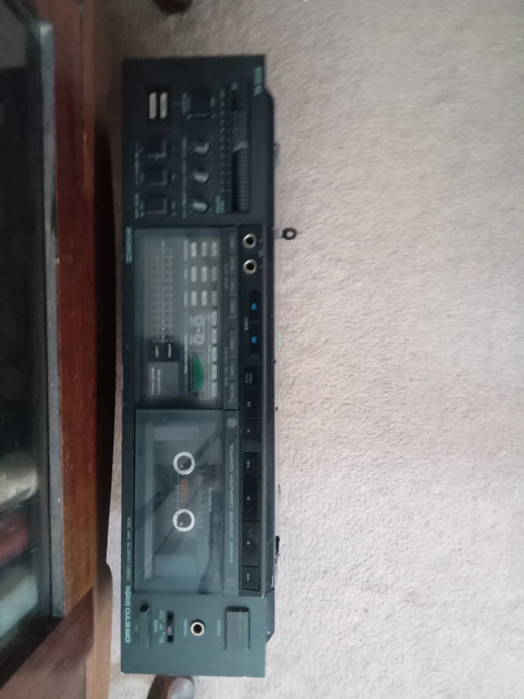 Onkyo Integra stereo cassette tape deck. It's a 3-head, 3-motor computer control model. Includes headphone jack and power button.