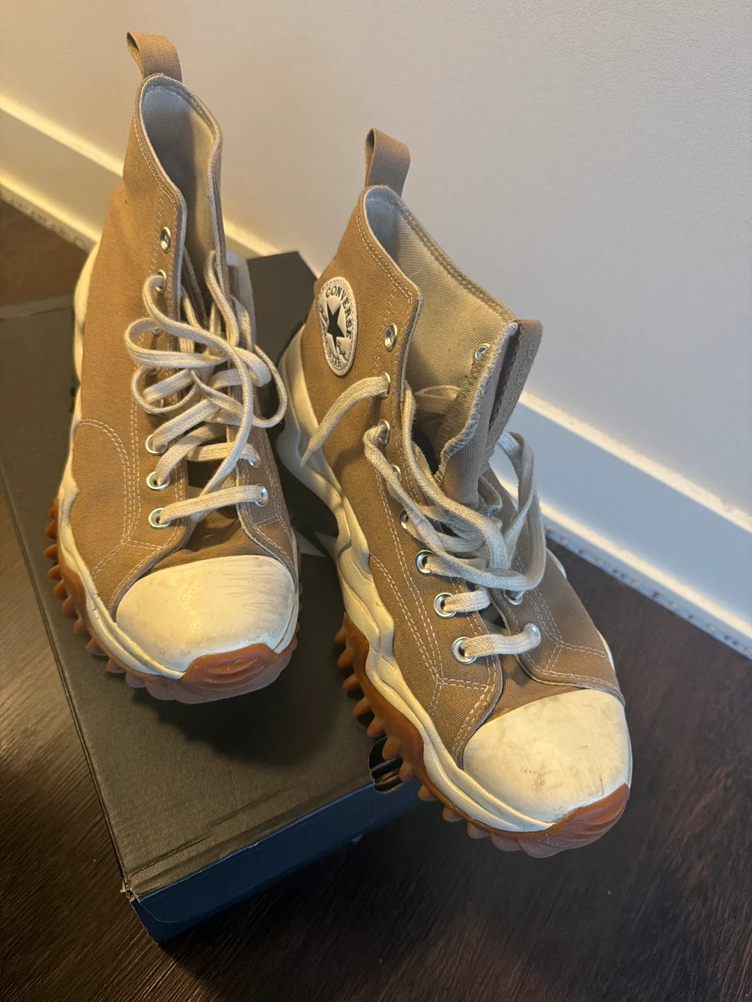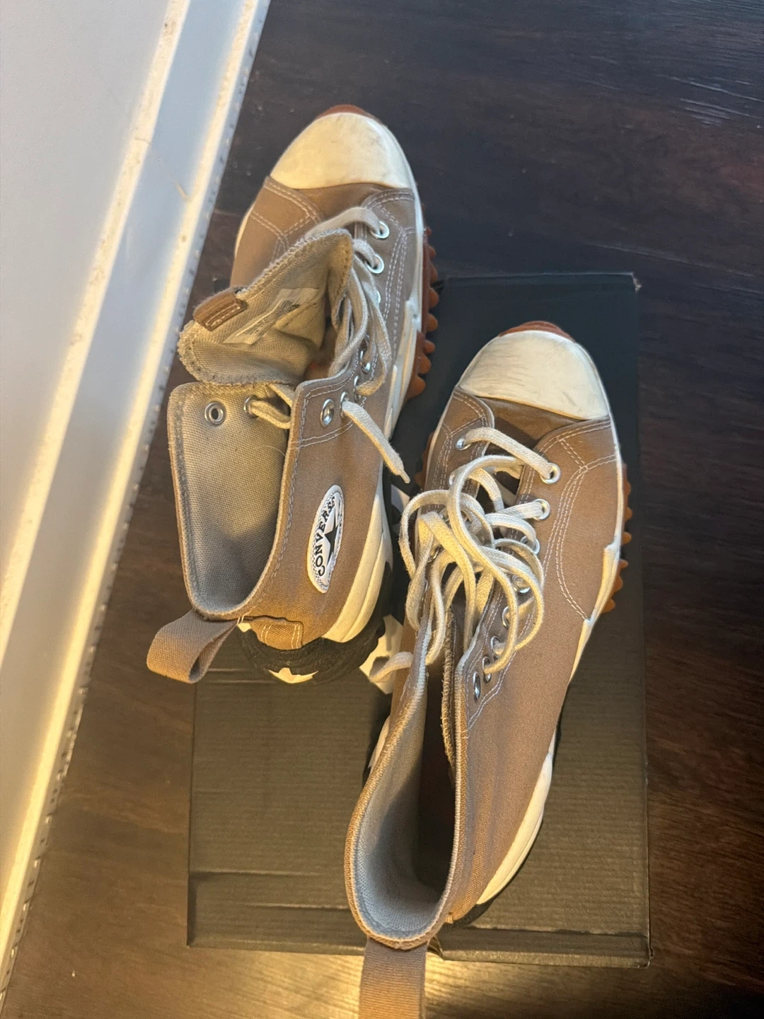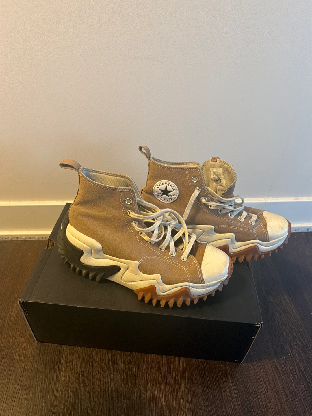 Selling a pair of Converse Run Star Motion high tops in size 10. They are in great condition but slightly worn and come with the original box!