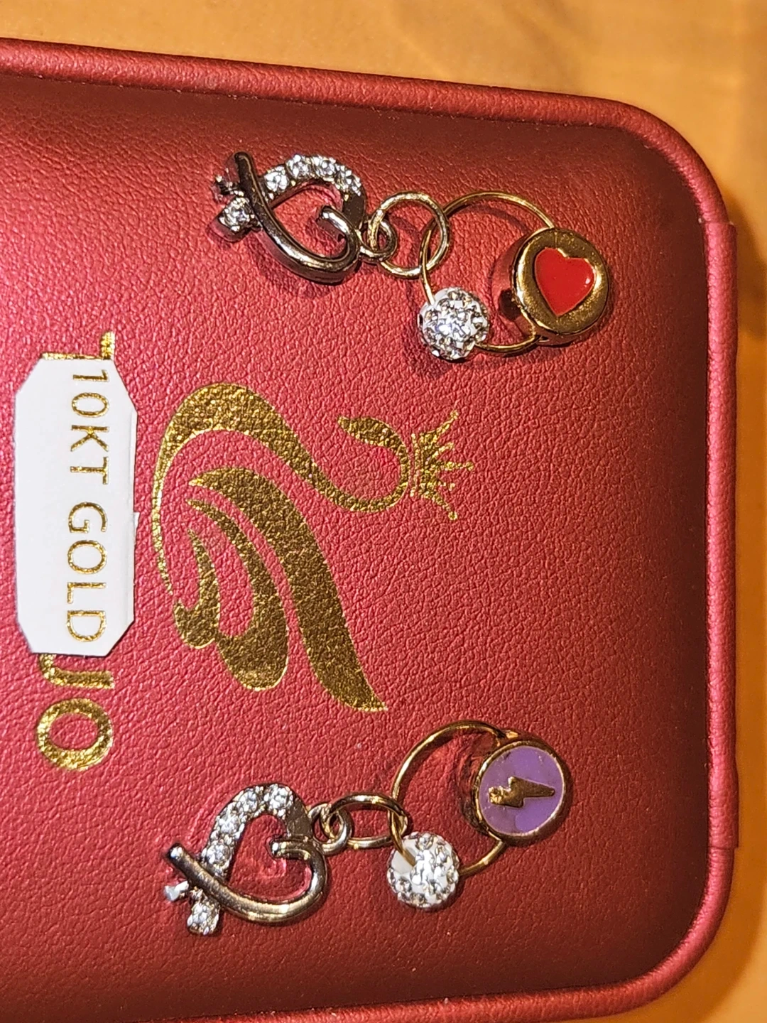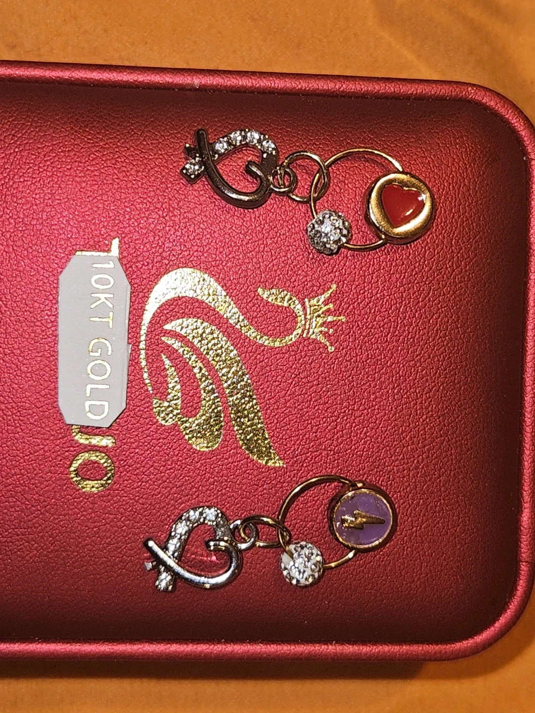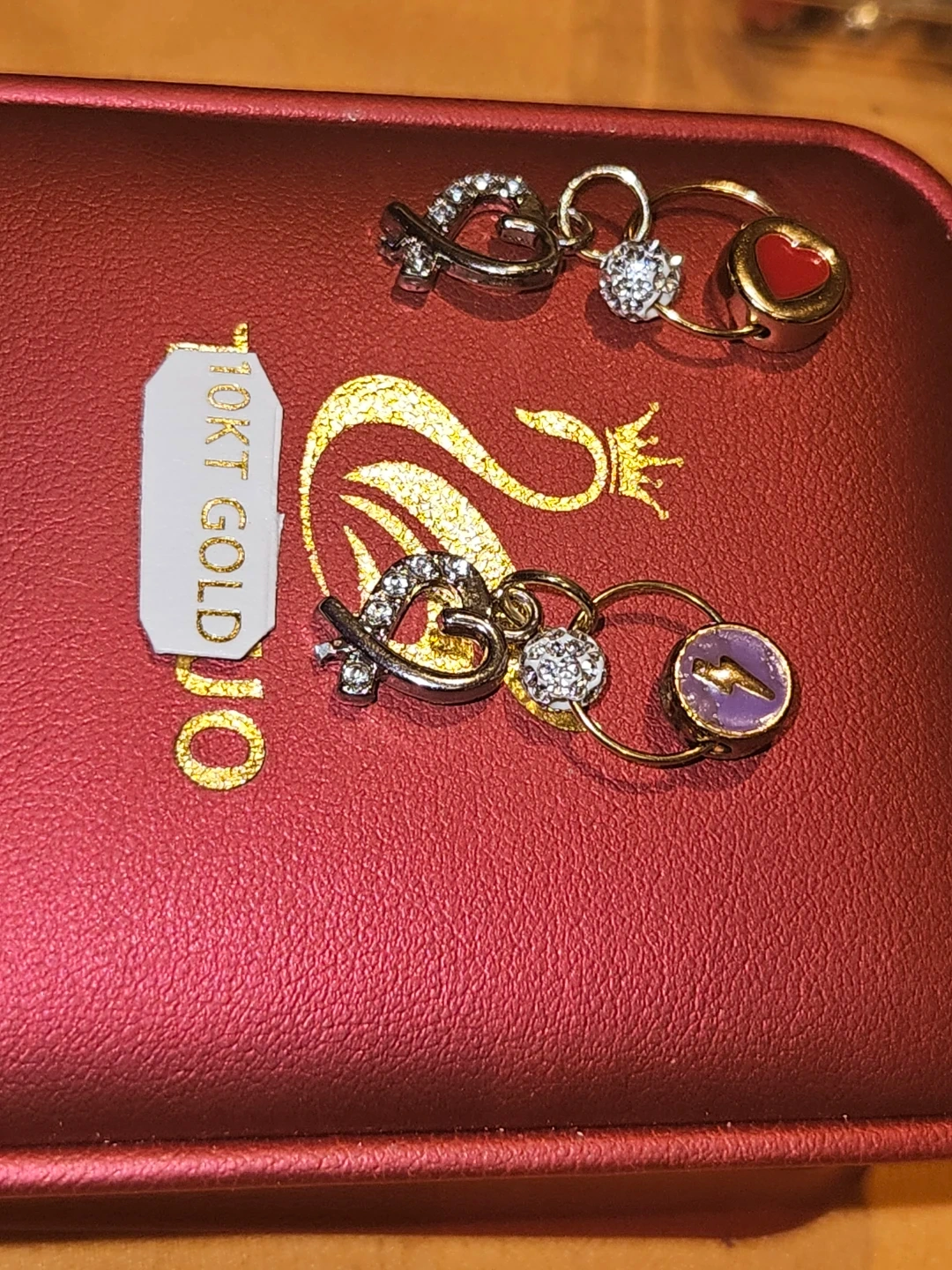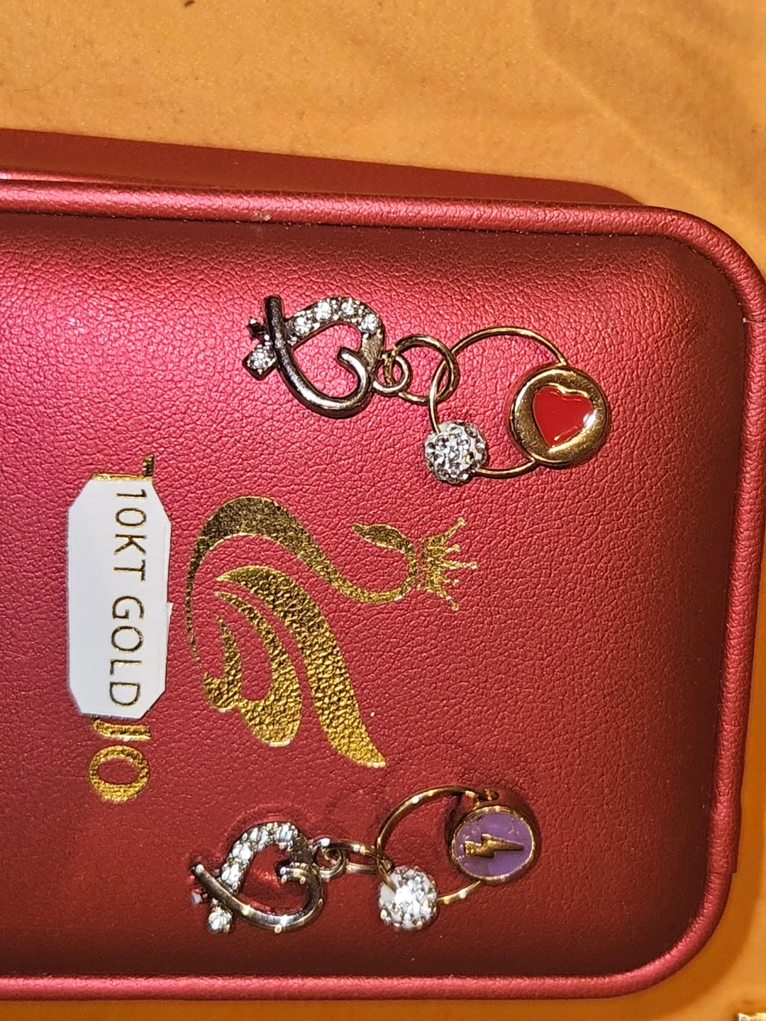 Selling a pair of adorable charm earrings. They are made of 10KT gold and feature cute heart and circle charms. Perfect for adding a touch of sparkle to any outfit! With customized decorative pendants. And a cluster of round Cubic Zirconia.