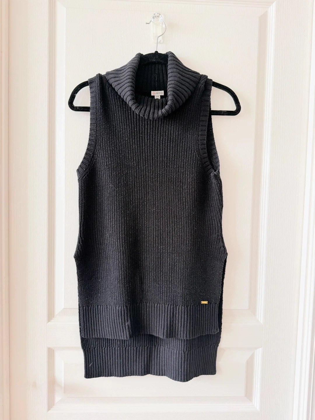 Selling a Guess black sleeveless turtleneck sweater. It's in great condition and perfect for layering or wearing on its own! The material is soft and comfortable, making it a versatile addition to your wardrobe