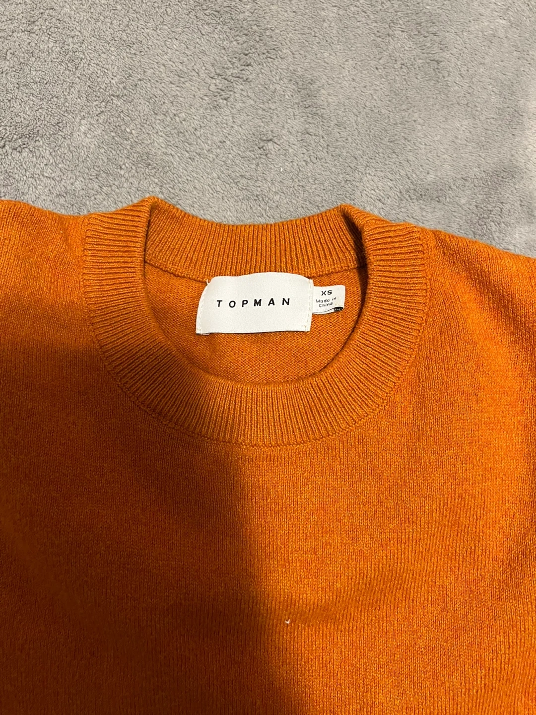 Here's a Topman sweater in a lovely orange colour! It's a size XS and in great condition. Perfect for adding a pop of colour to your wardrobe