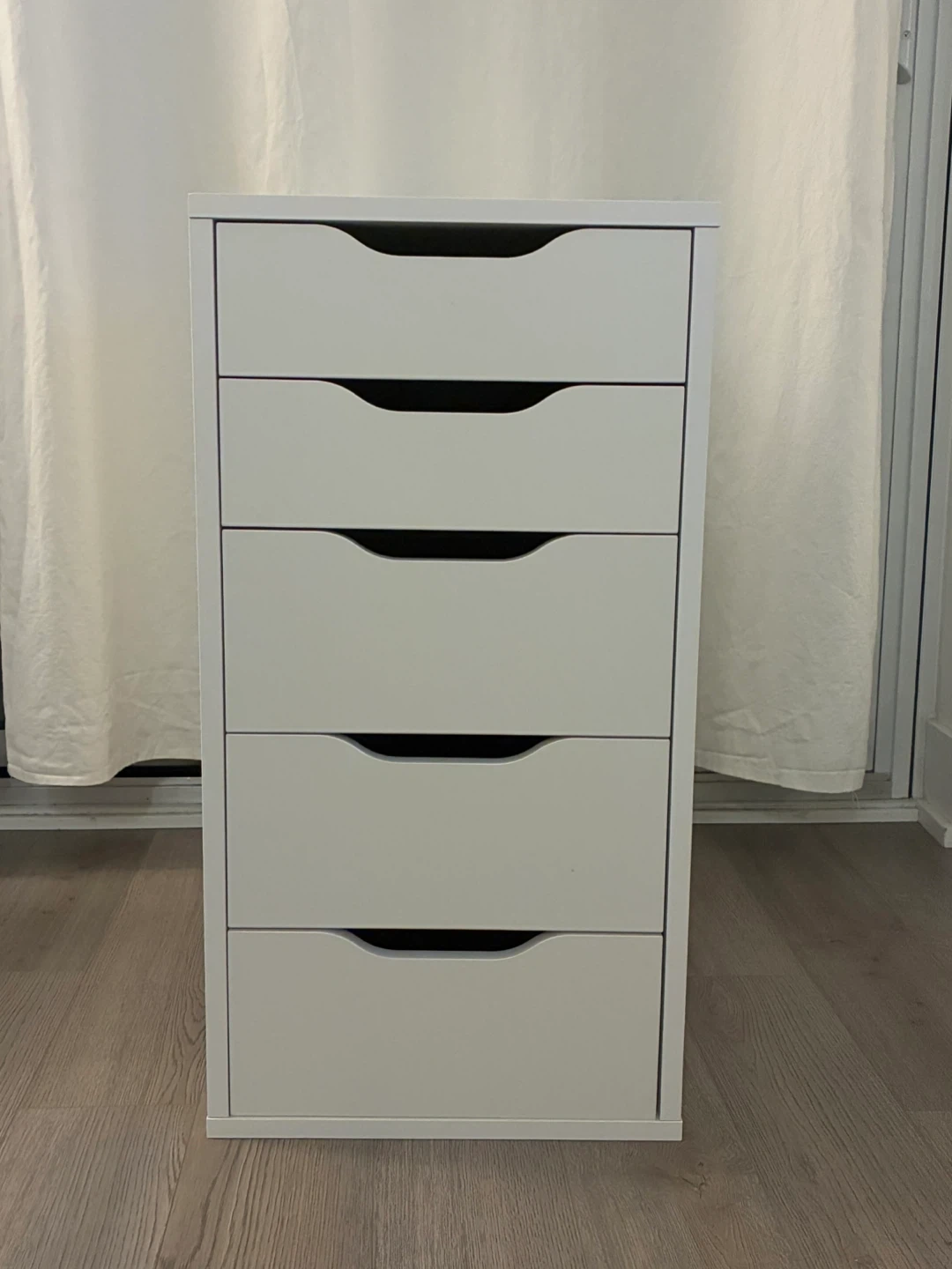 Selling a white IKEA Alex drawer unit with 5 drawers. It's in great condition and ready for a new home! The unit measures 70 cm (27 1/2") in height, 36 cm (14 1/8") in width, and 58 cm (22 7/8") in depth