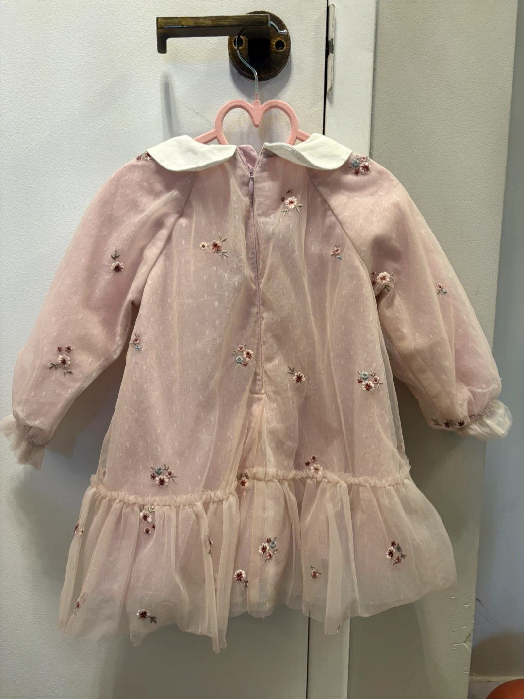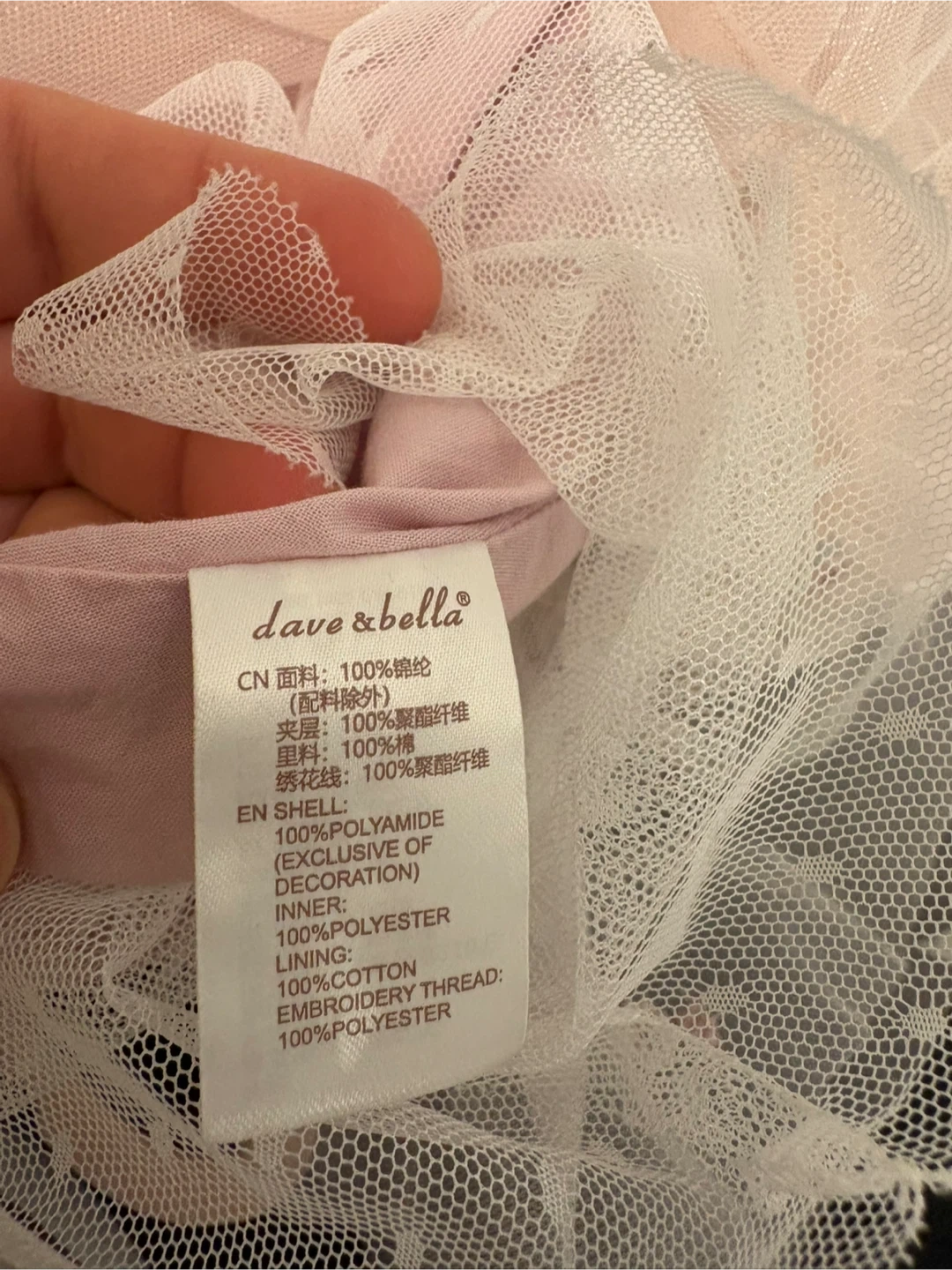 Dave & Bella dress features a lovely pink hue with delicate floral embroidery. It's made with a polyamide outer shell and a polyester inner. Perfect for special occasions!