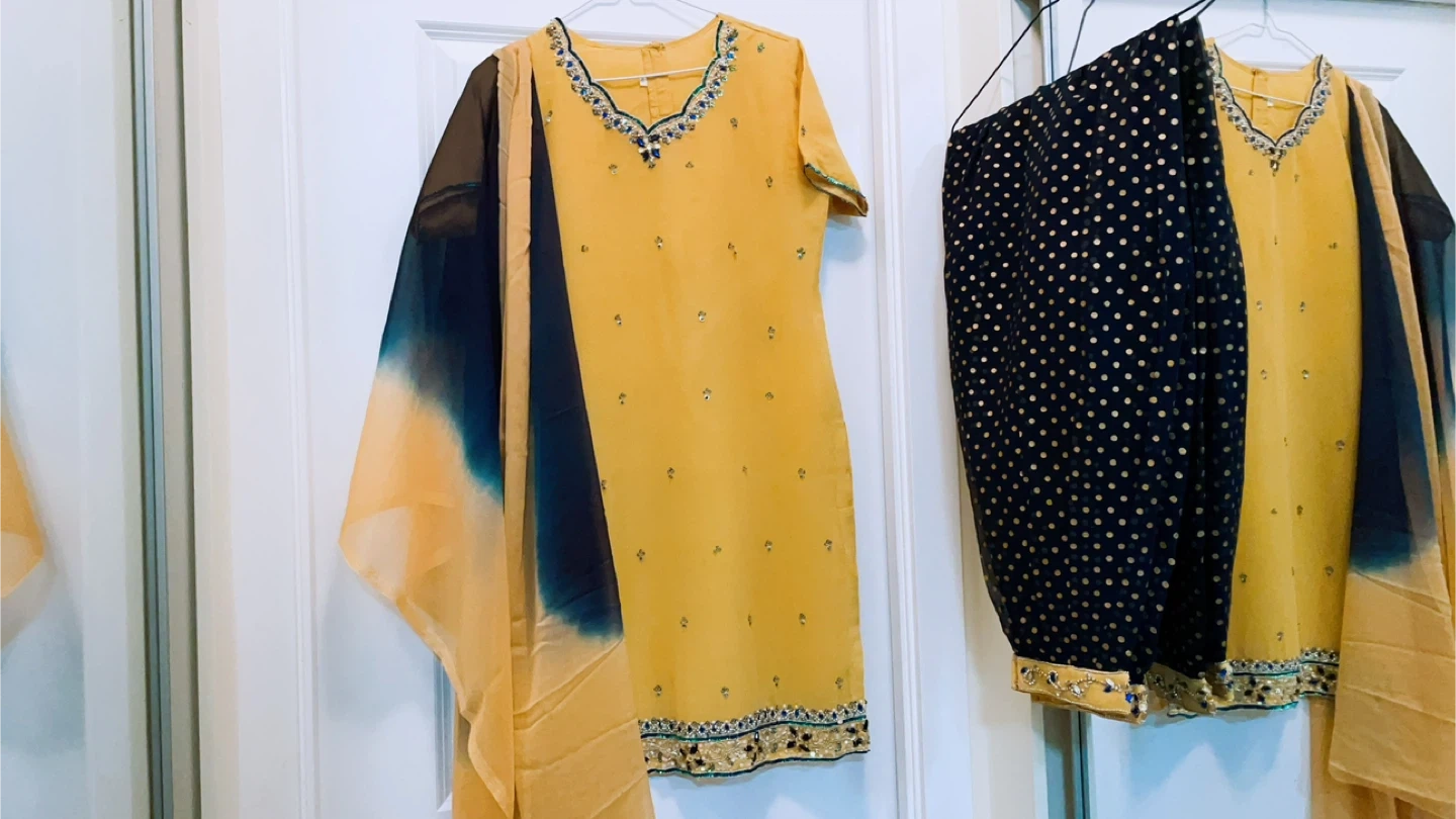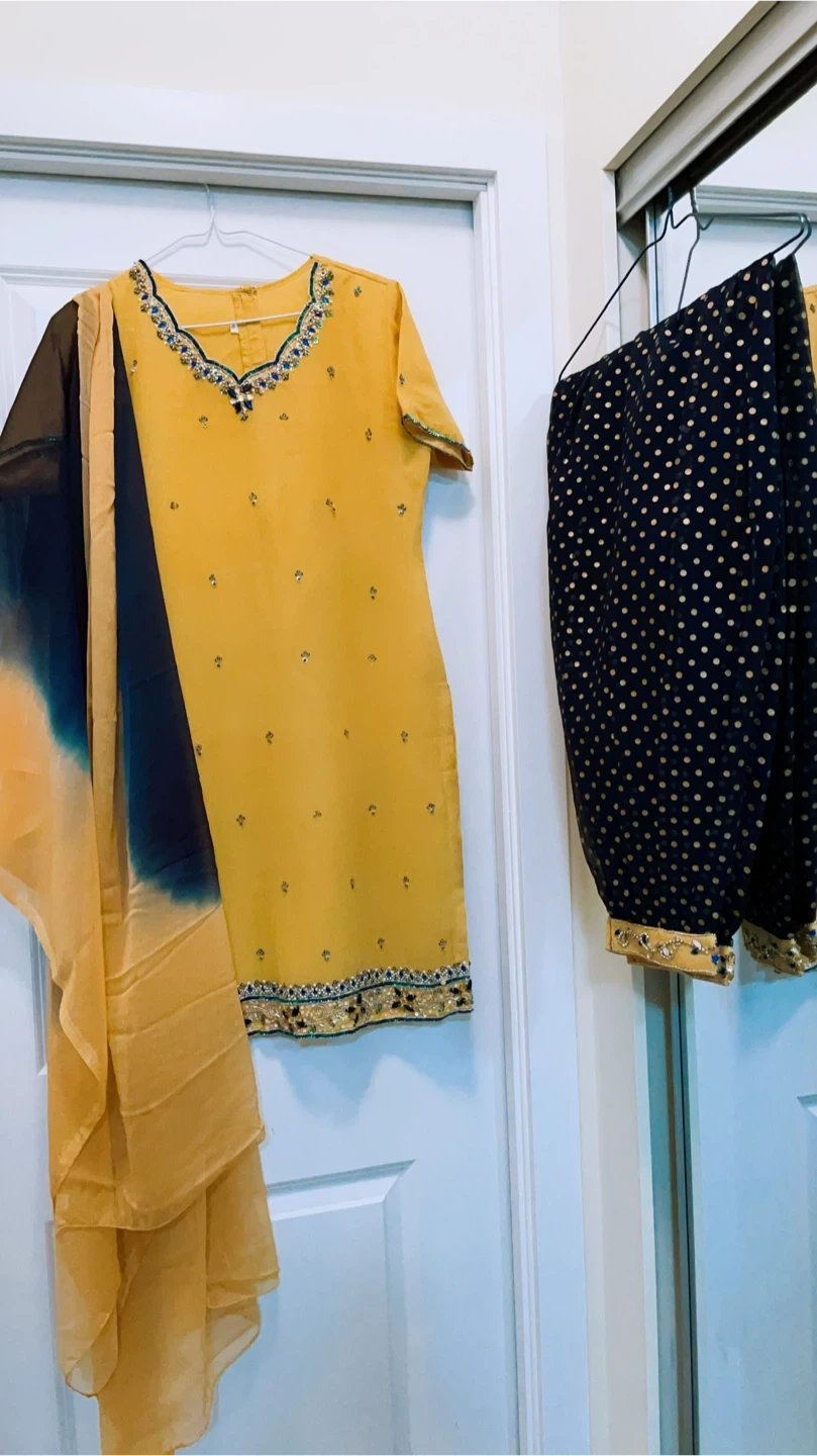 Selling a beautiful skin salwar kameez with intricate embellishments. The size is medium . Comes with a matching dupatta and pants. Perfect for a special occasion!