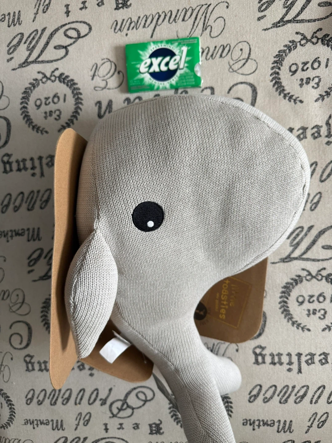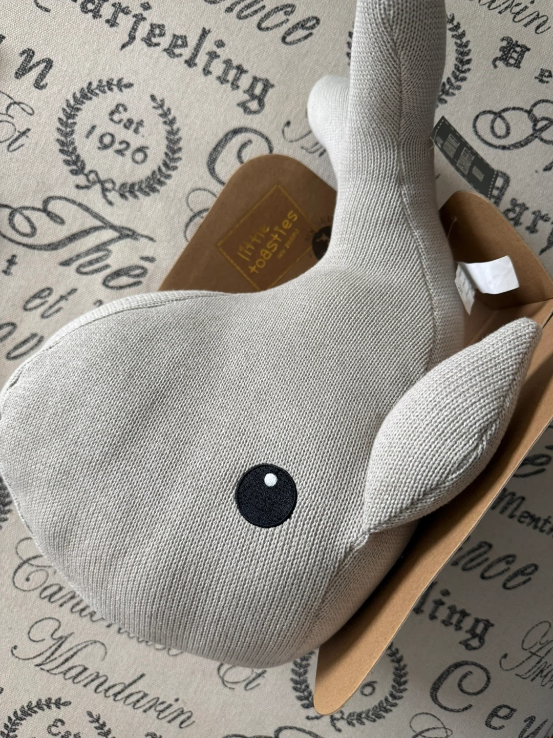 This cute Little Toasties whale plush has a removable belly that can be microwaved. It's made of soft knit material and is a gentle grey colour.