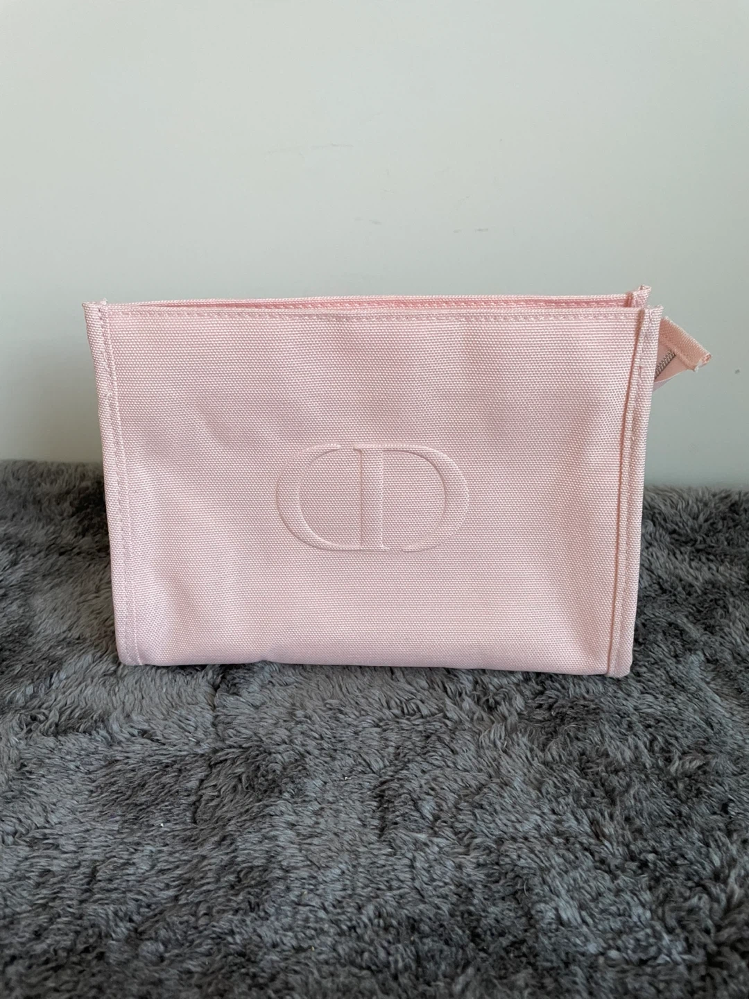 This is a light pink Christian Dior pouch. It's made of canvas material. It's a nice size for carrying essentials.
